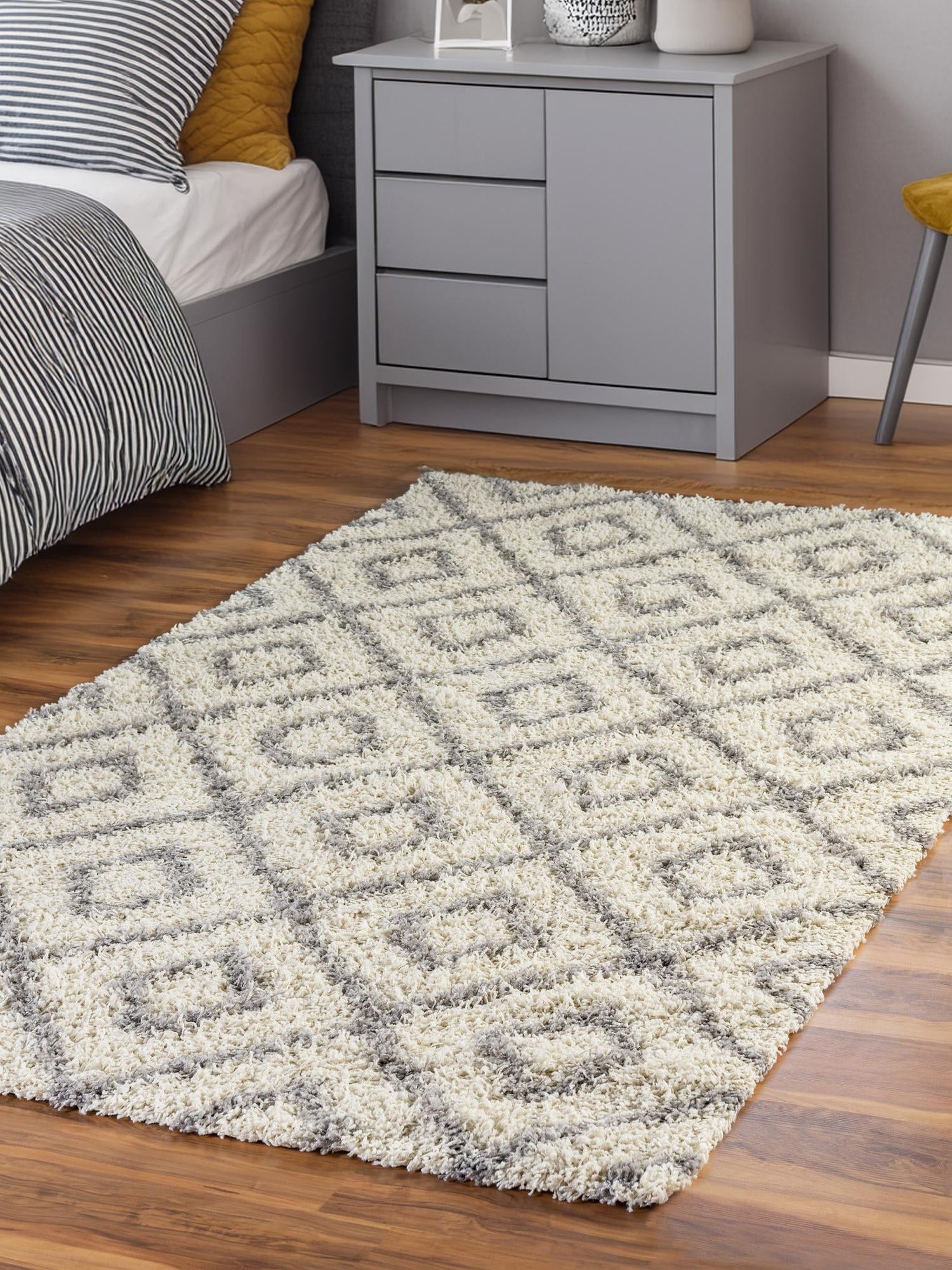 - Stylish Geometric Pattern: The modern trellis shag design adds a contemporary flair to your decor, creating an eye-catching focal point in any room. Its geometric pattern is perfect for those who appreciate sleek, modern aesthetics. Bring a fresh and trendy look to your home with this stylish and chic rug.