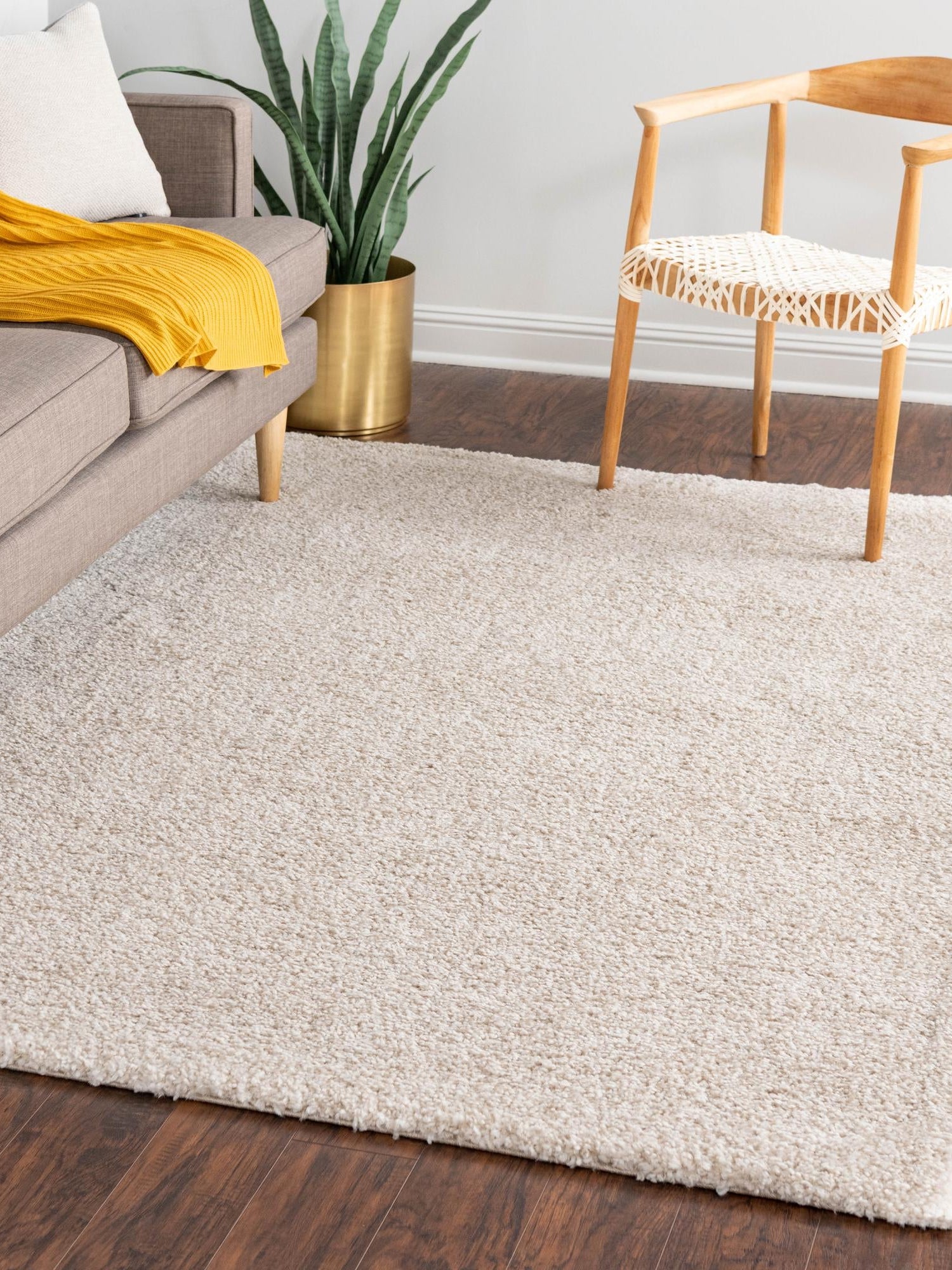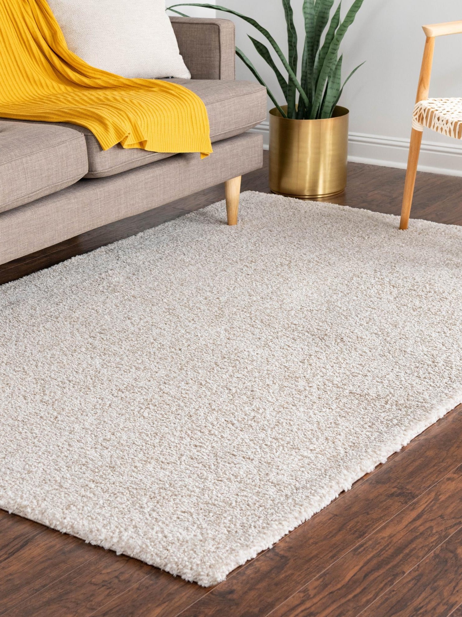 Ivory 10' x 14' 1 Solo Rectangle Area Rug Thick Soft Touch Fluffy & Plush Shaggy Pile