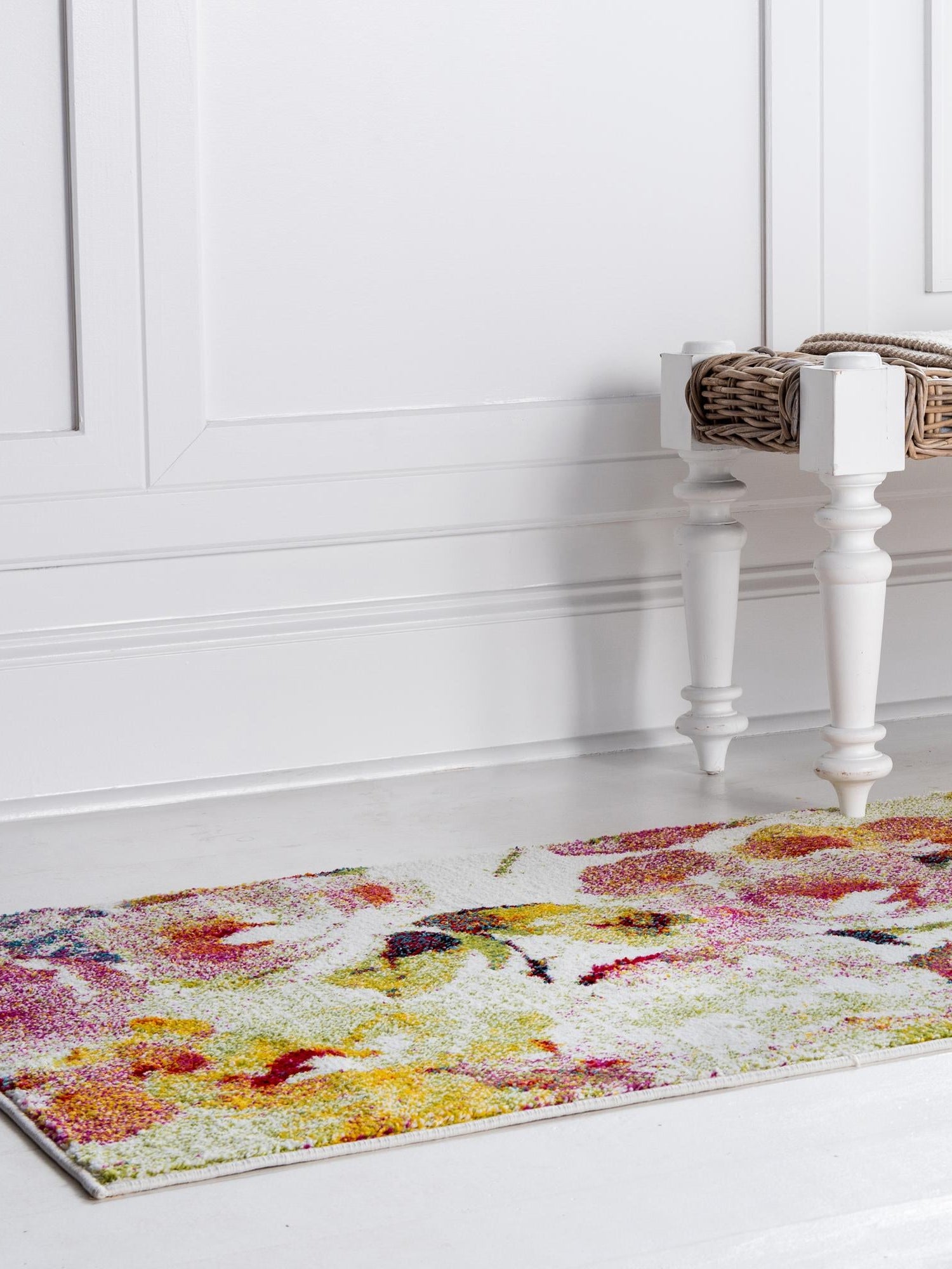 Ivory 2' x 8' Lyon Runner Area Rug Vivid Colorful Abstract Modern 100% Polypropylene Carpet for Living Room, Dining, Office