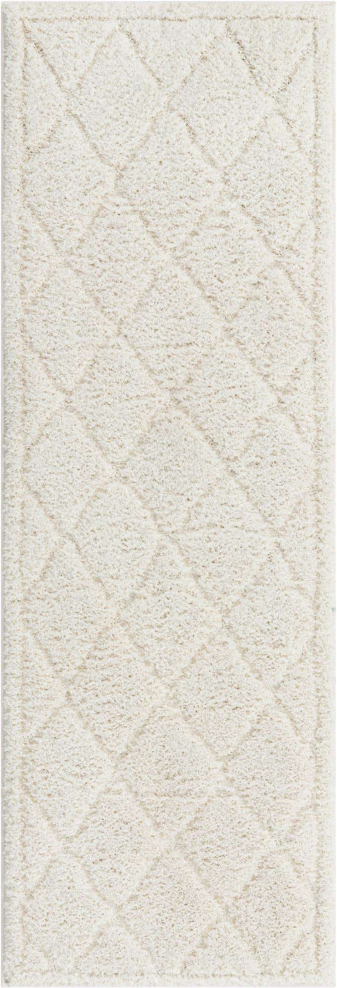 Ivory 2' x 8' Trellis Shag Runner Area Rug Thick Soft Touch Fluffy & Plush Shaggy Pile
