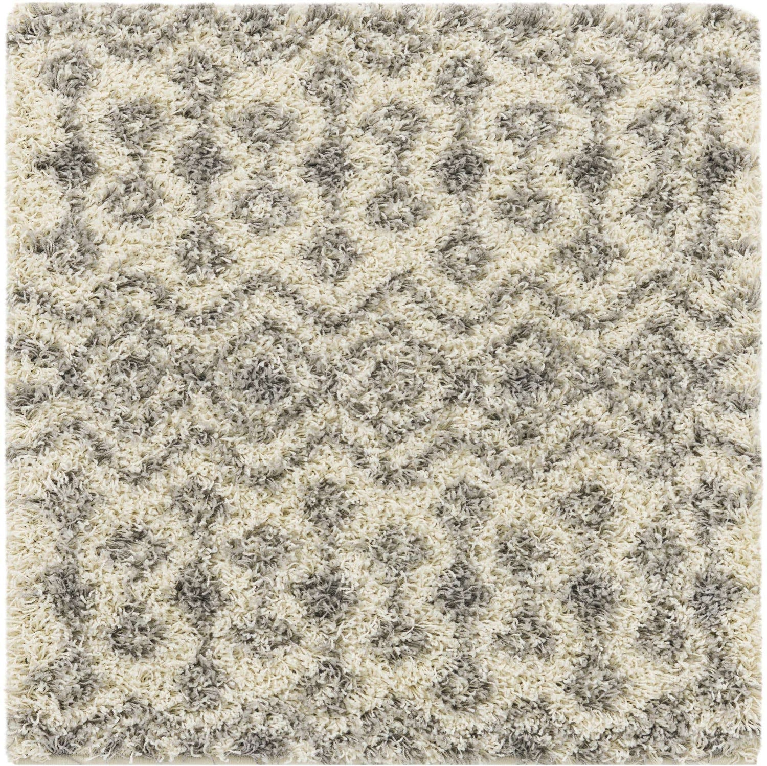 Ivory 3' 1 x 3' 1 Moroccan Trellis Shag Square Area Rug Thi...