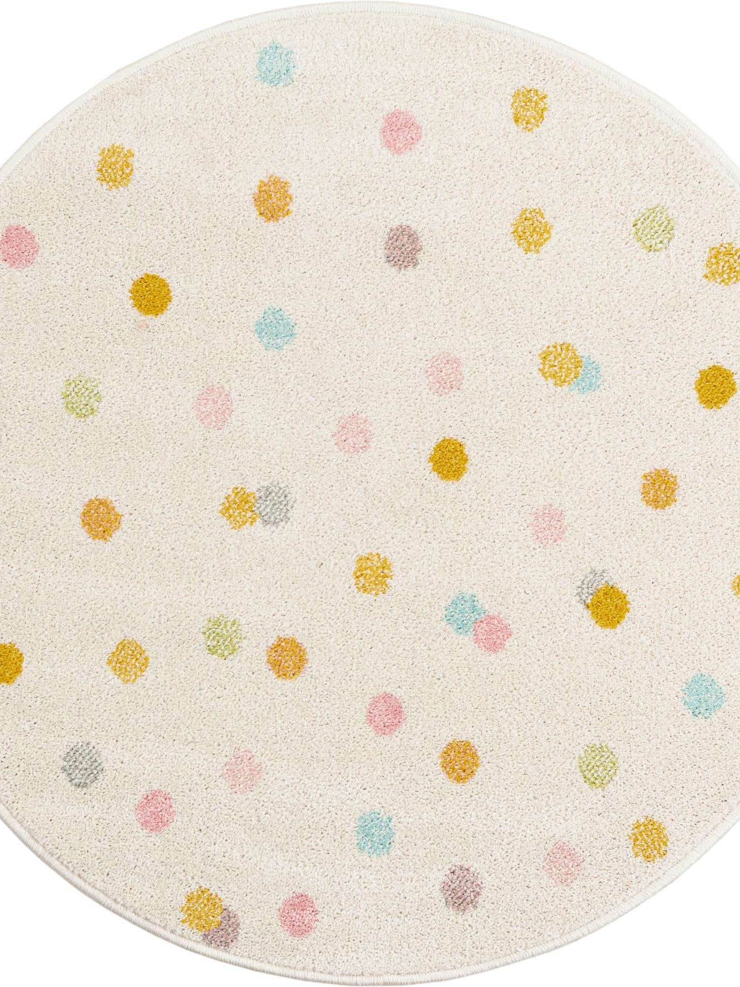 Ivory 3' 3 x 3' 3 Whimsy Kids Round Area Rug for Baby Nursery, Toddler Playroom, Bedrooms