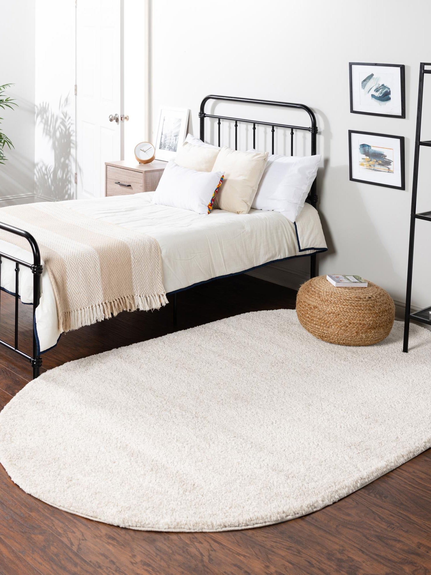 Ivory 3' 3 x 5' 3 Solo Oval Area Rug Thick Soft Touch Fluffy & Plush Shaggy Pile