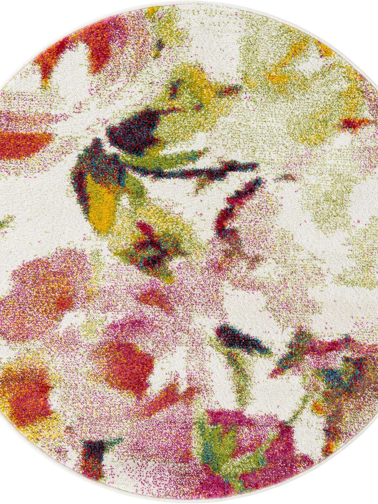 Ivory 4' 1 x 4' 1 Lyon Round Area Rug Vivid Colorful Abstract Modern 100% Polypropylene Carpet for Living Room, Dining, Office