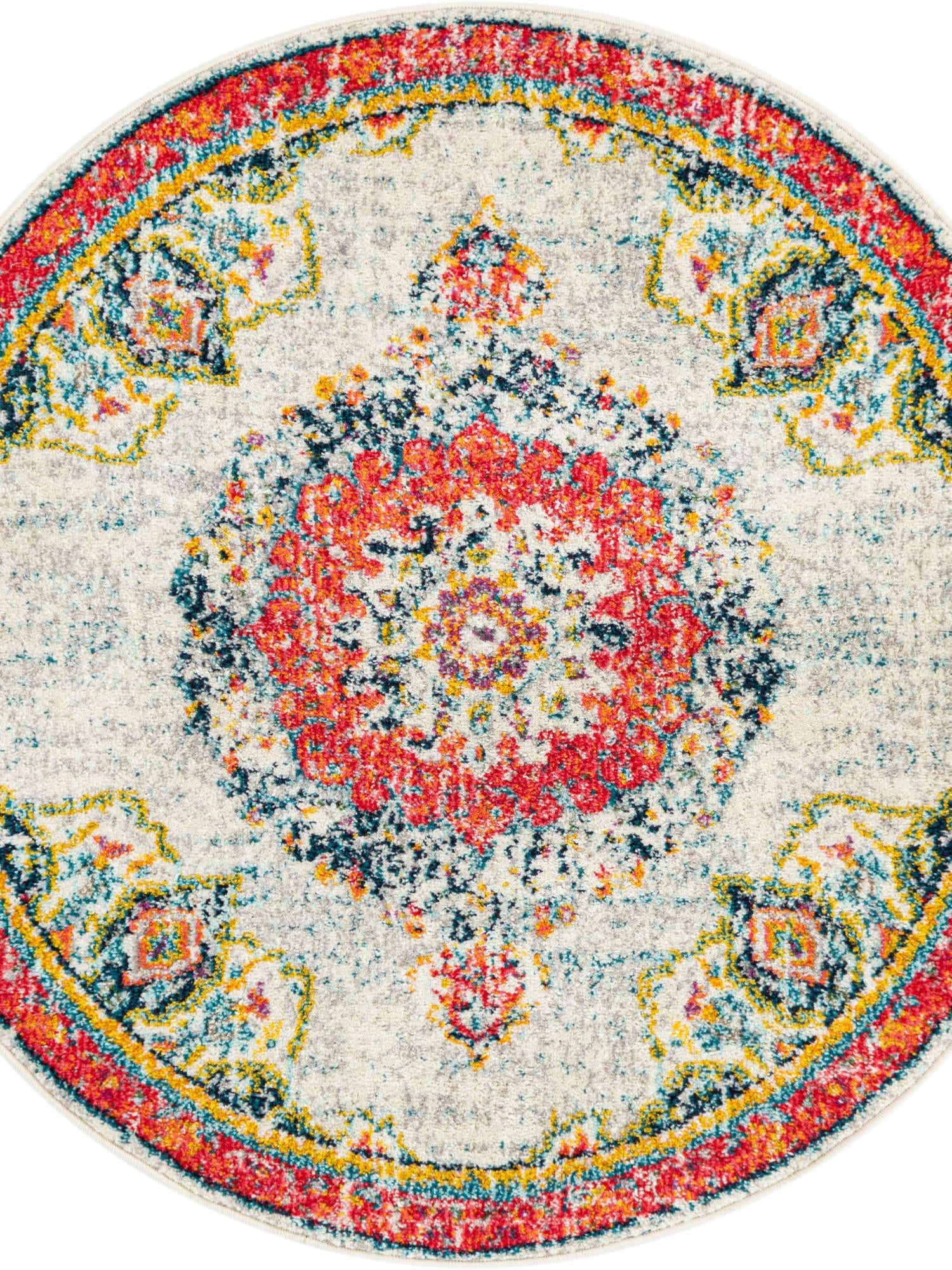 Washable Multicolor 5' x 5' Timeless Round Area Rug Easy to Clean Stain Resistant & Durable