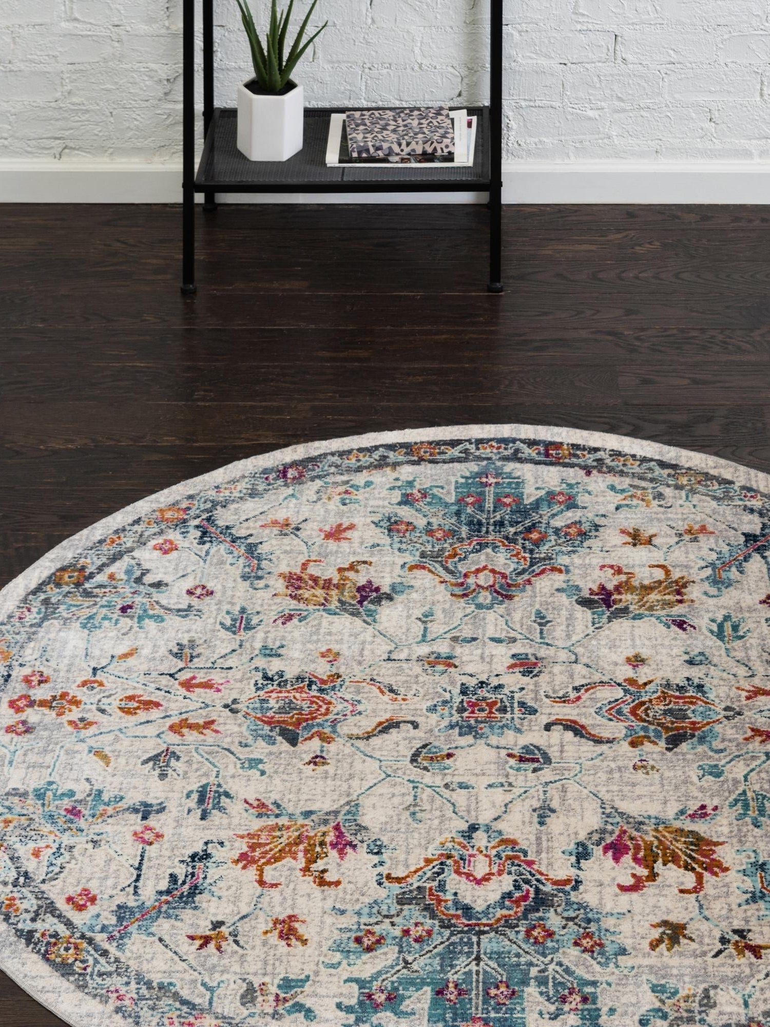 Washable Multicolor 5' x 5' Timeless Round Area Rug Easy to Clean Stain Resistant & Durable
