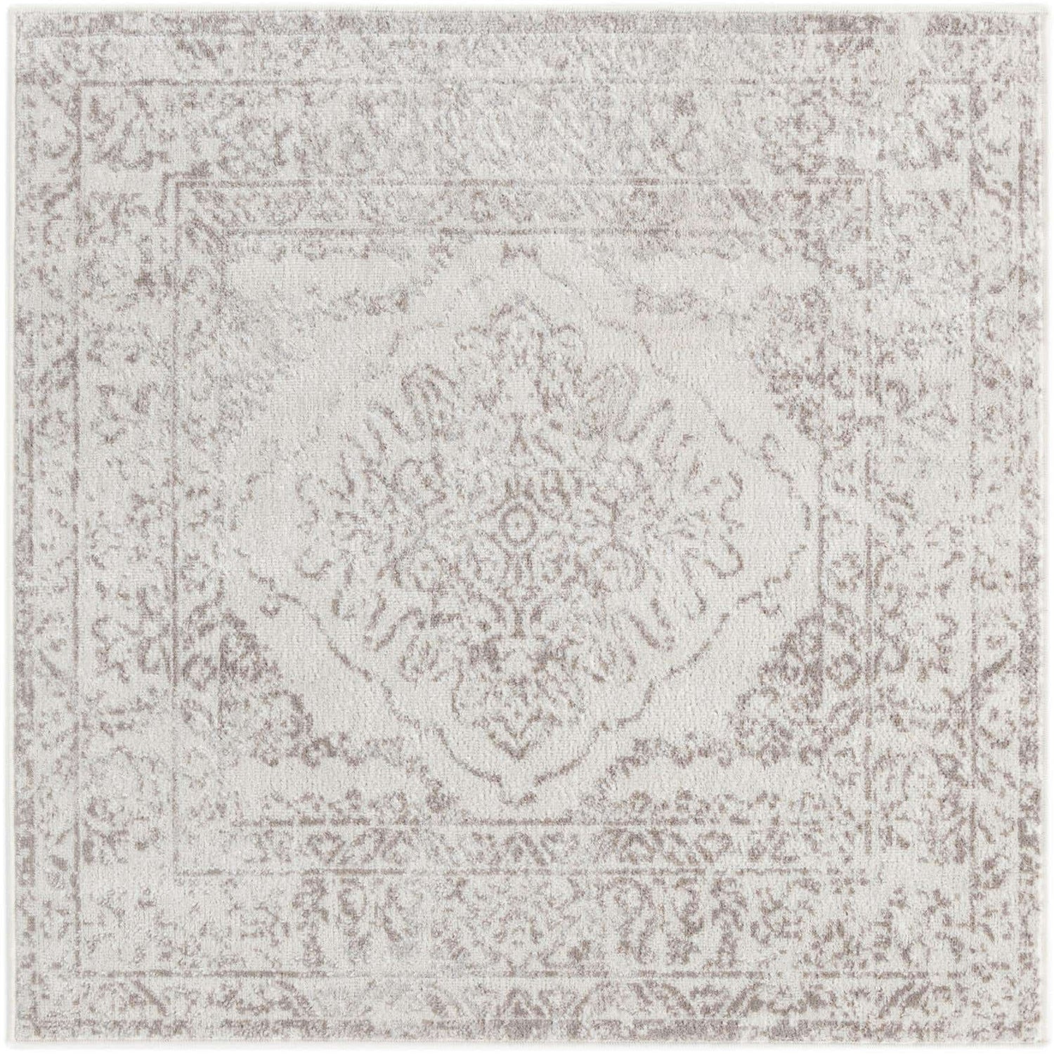 Washable Gray 2' x 2' Timeless Round Area Rug Easy to Clean Stain Resistant & Durable