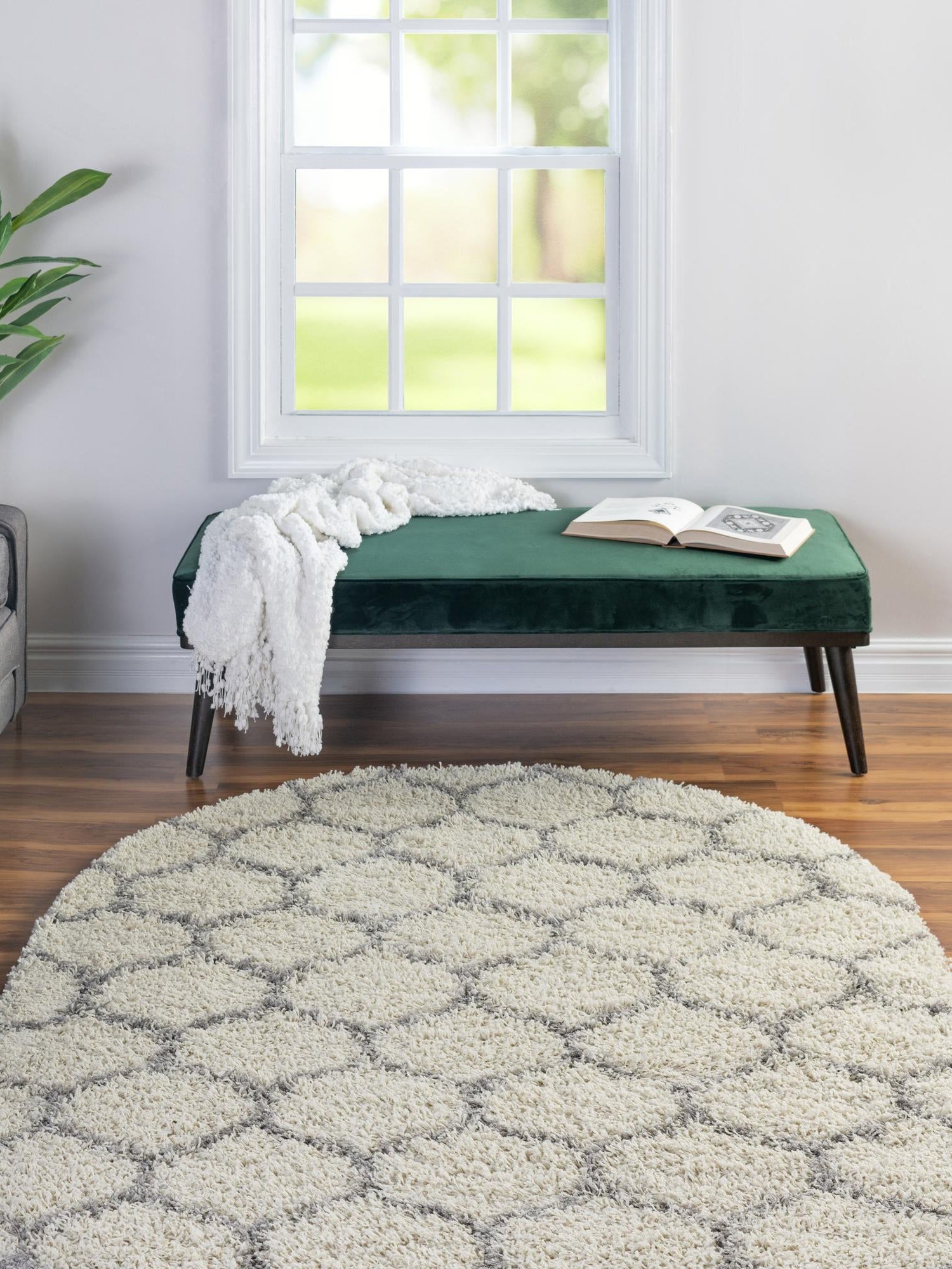 Ivory 4' x 6' Trellis Shag Oval Area Rug Thick Soft Touch Fluffy & Plush Shaggy Pile