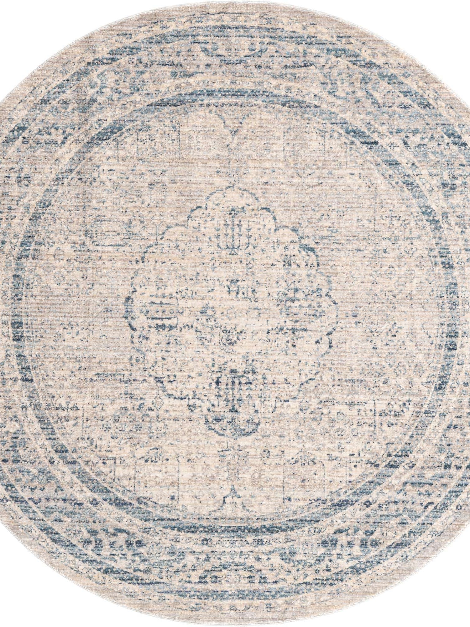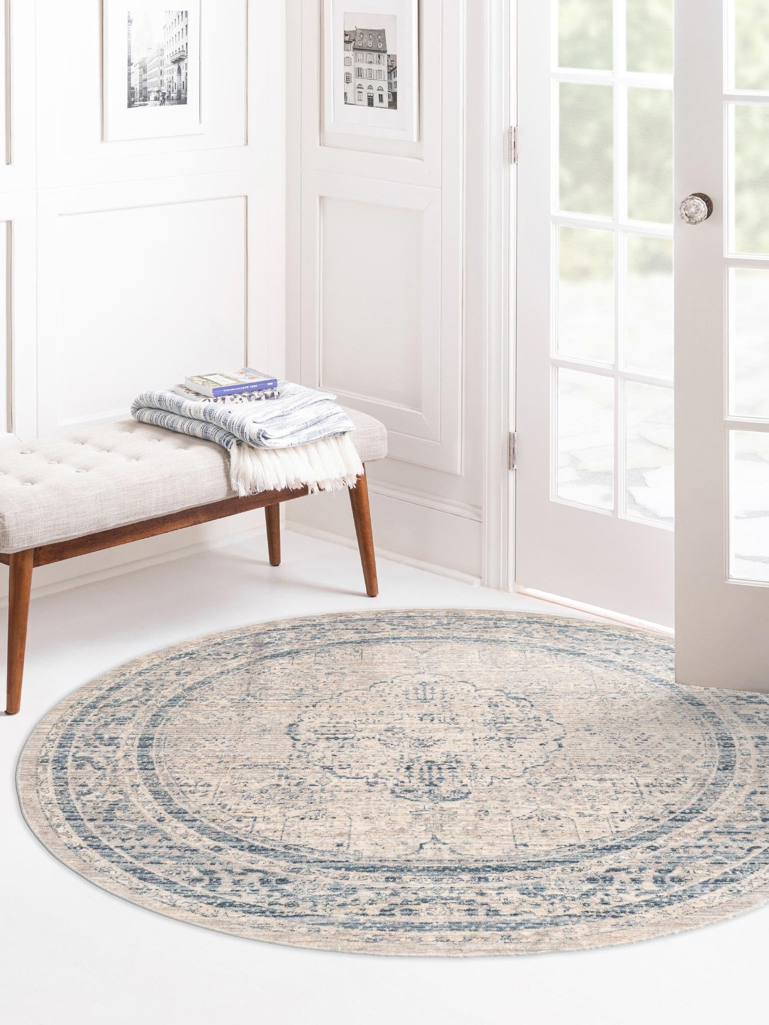 Washable Blue 5' x 5' Timeless Round Area Rug Easy to Clean Stain Resistant & Durable