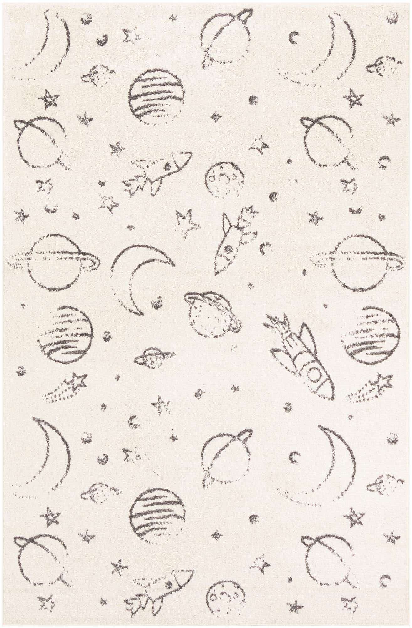 Ivory 5' 3 x 8' Whimsy Kids Rectangle Area Rug for Baby Nursery, Toddler Playroom, Bedrooms