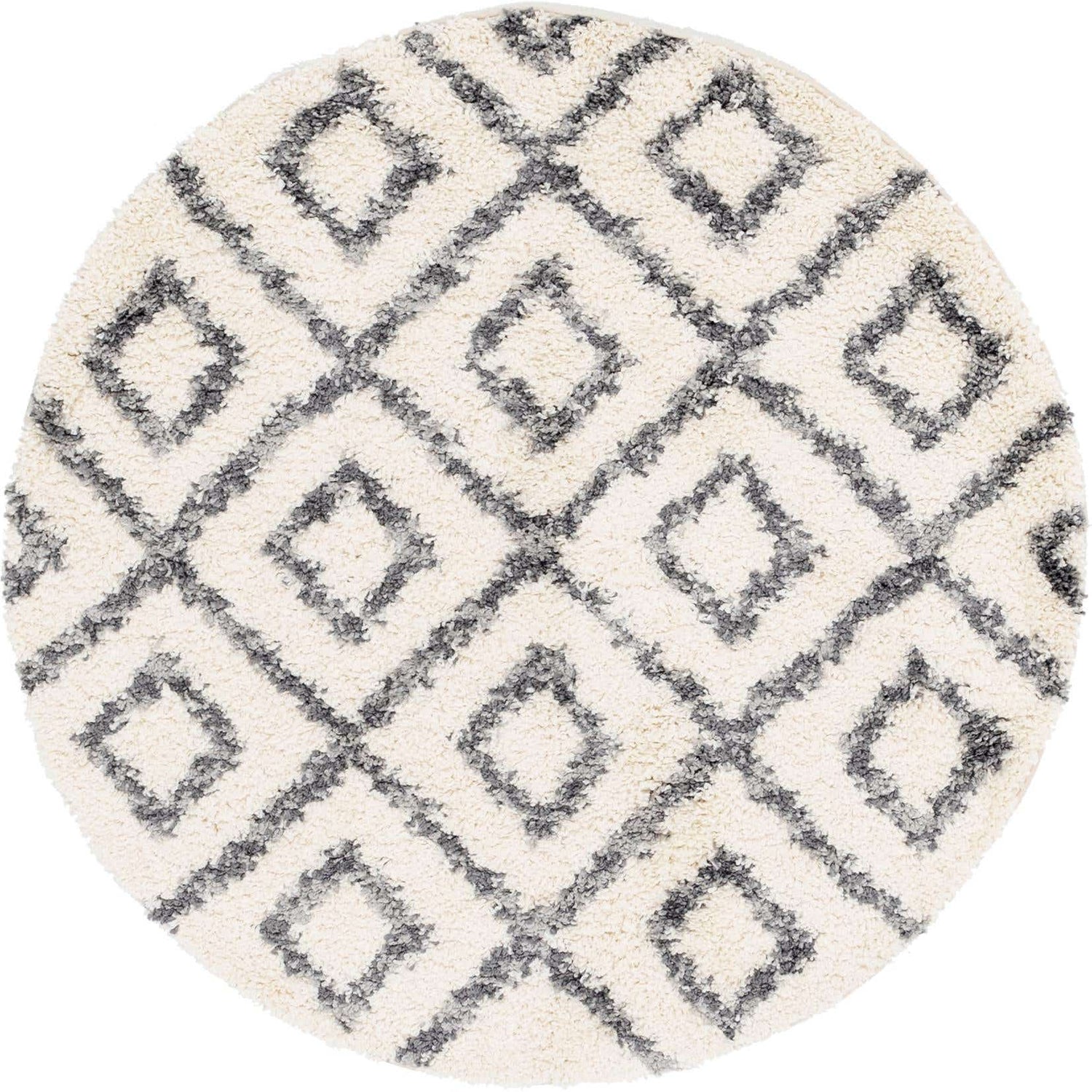 Ivory 5' x 5' Hygge Shag Round Area Rug Thick Soft Touch Fl...