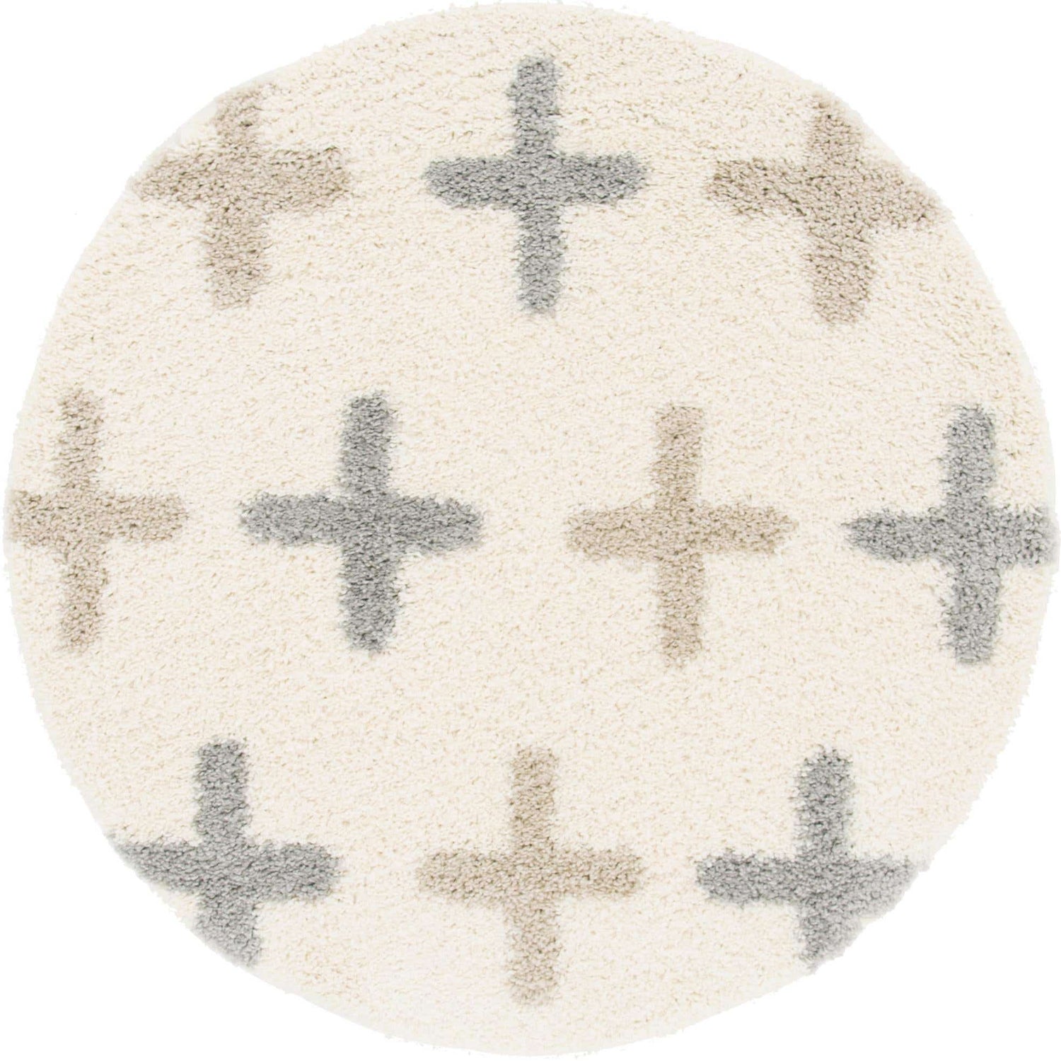 Ivory 5' x 5' Hygge Shag Round Area Rug Thick Soft Touch Fluffy & Plush Shaggy Pile 100% Polypropylene With Jute Backing Modern Carpet