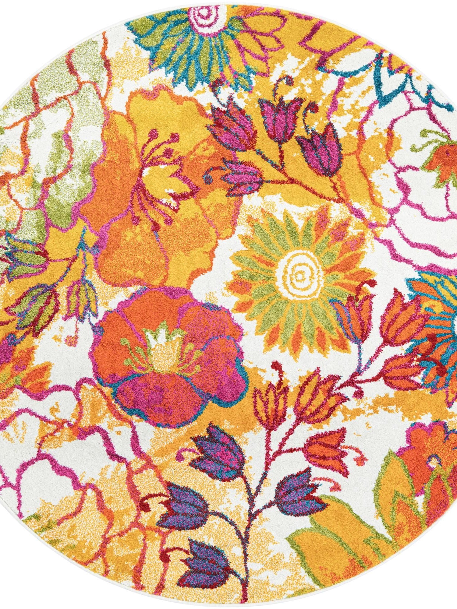 Ivory 6' 1 x 6' 1 Lyon Round Area Rug Vivid Colorful Abstra...