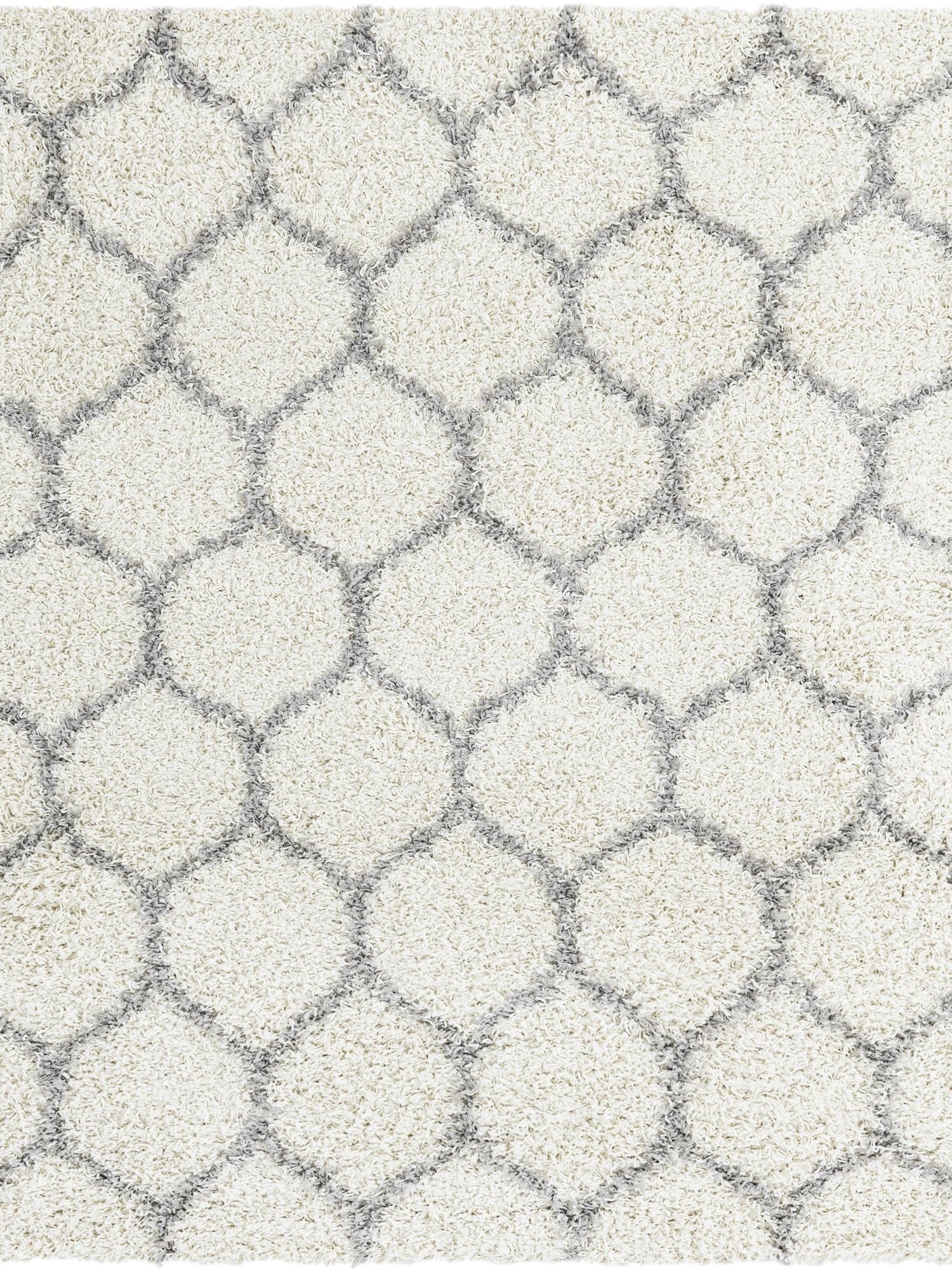 Ivory 6' x 6' Trellis Shag Square Area Rug Thick Soft Touch Fluffy & Plush Shaggy Pile