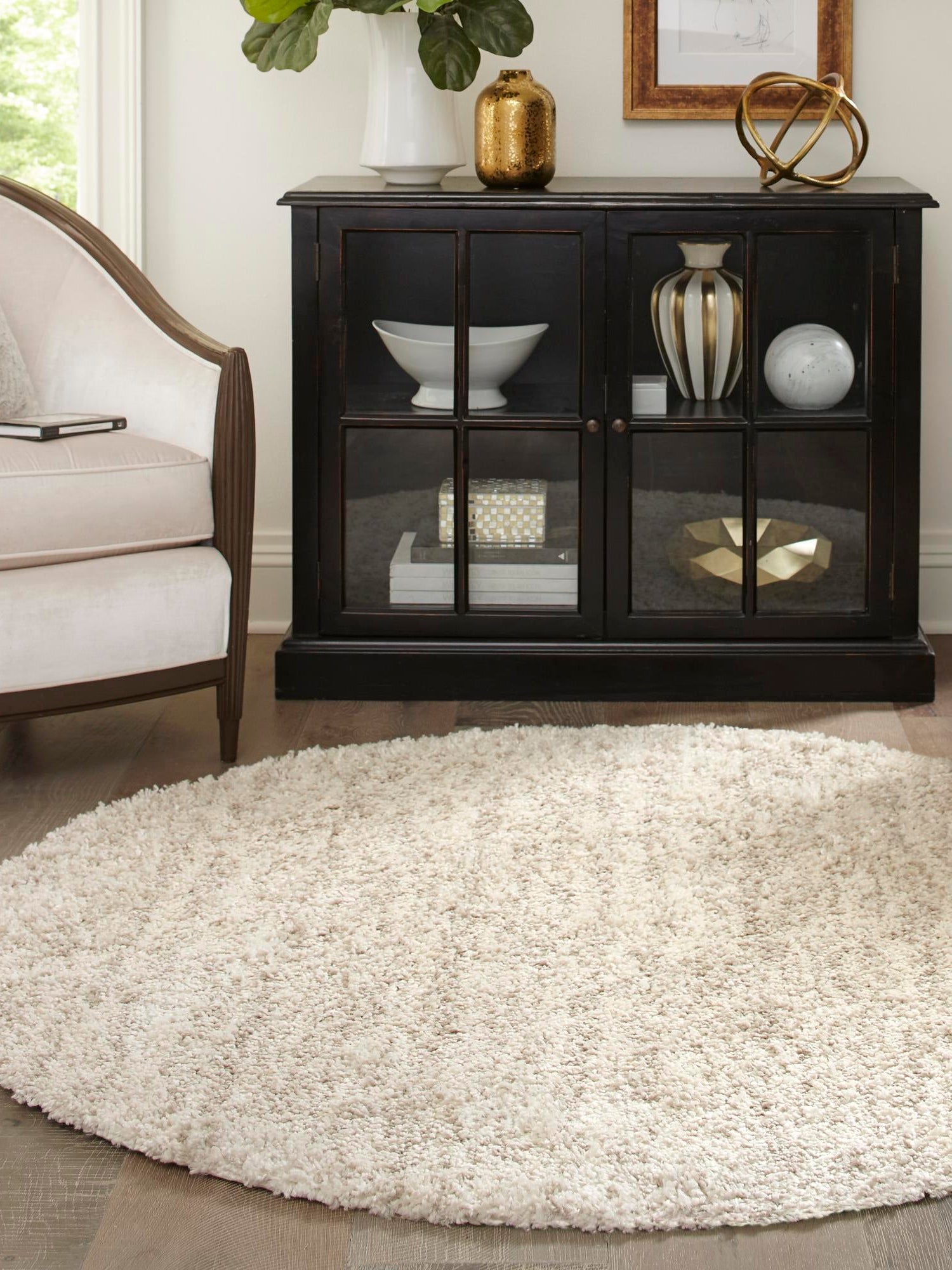 Ivory 7' 1 x 7' 1 Hygge Shag Round Area Rug Thick Soft Touc...