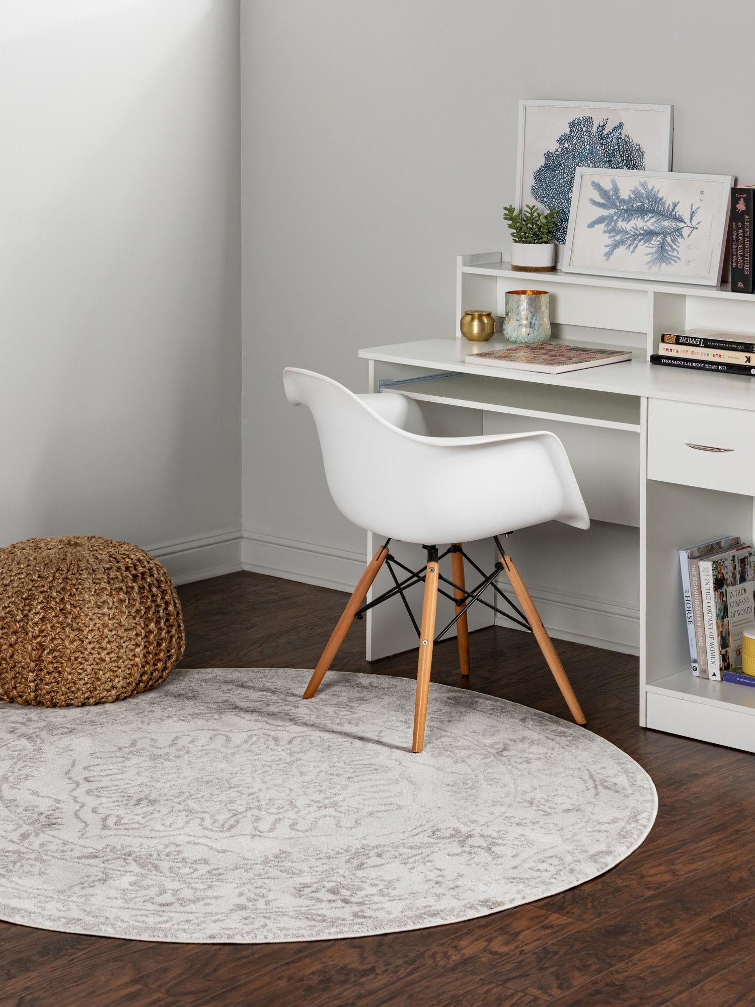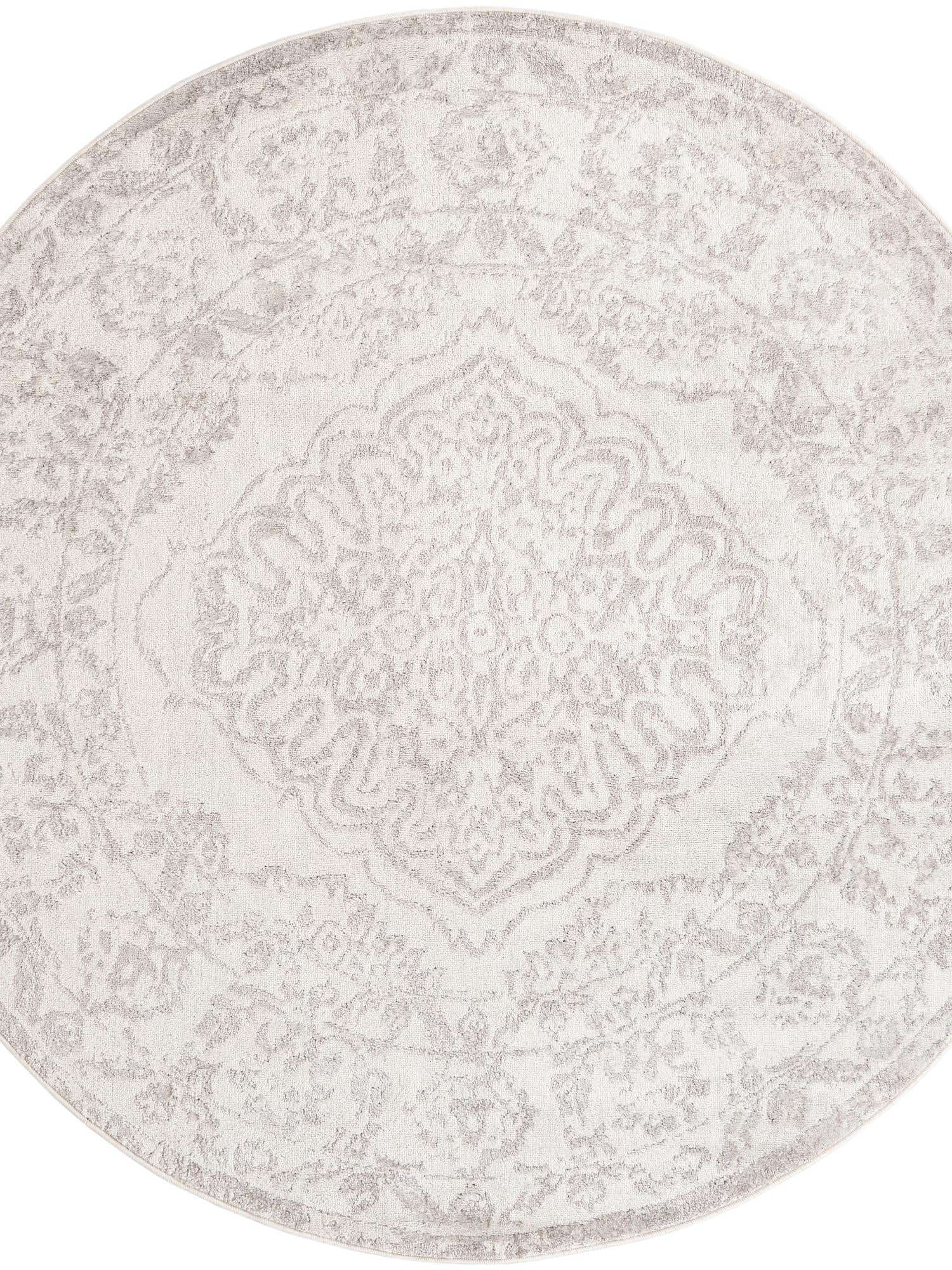 Washable Gray 2' x 2' Timeless Round Area Rug Easy to Clean Stain Resistant & Durable