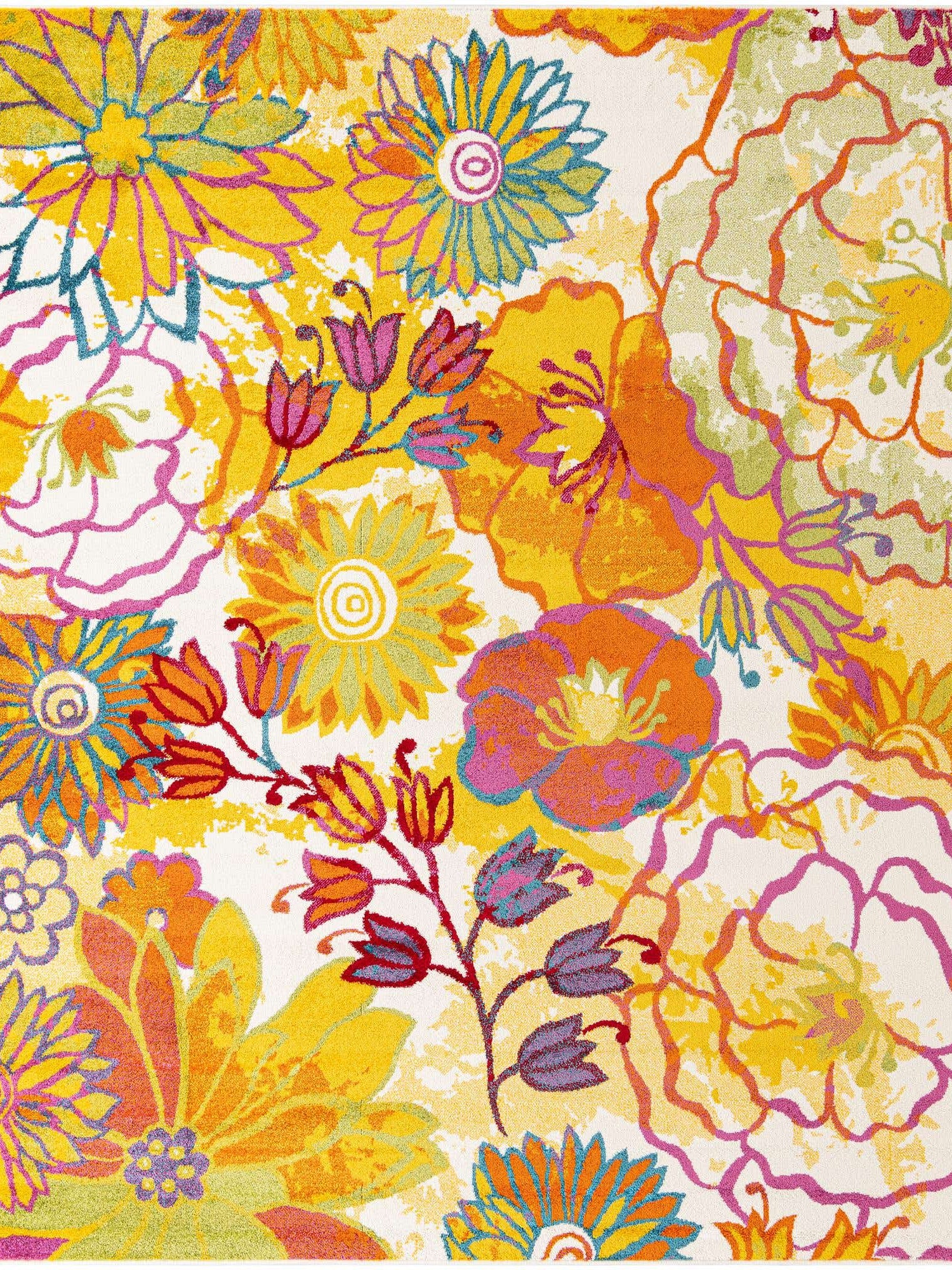 Ivory 8' x 10' Lyon Rectangle Area Rug Vivid Colorful Abstract Modern 100% Polypropylene Carpet for Living Room, Dining, Office