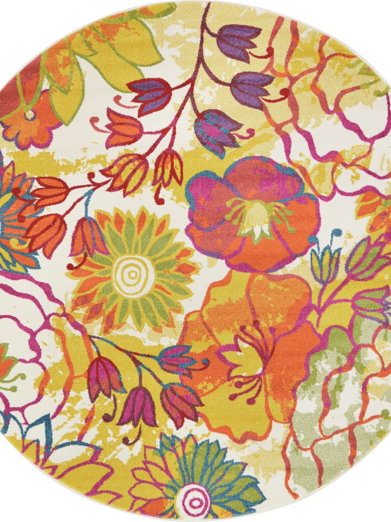 Washable Multicolor 5' x 5' Timeless Round Area Rug Easy to Clean Stain Resistant & Durable