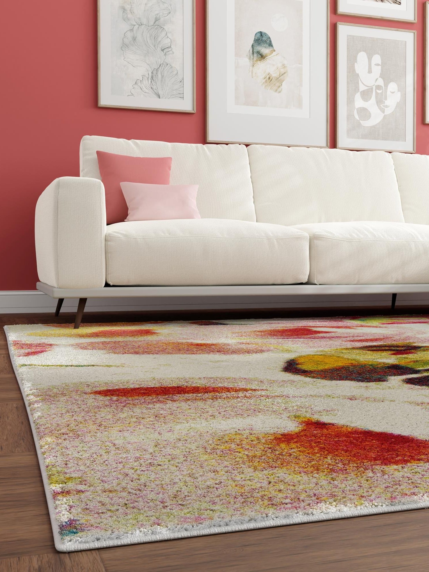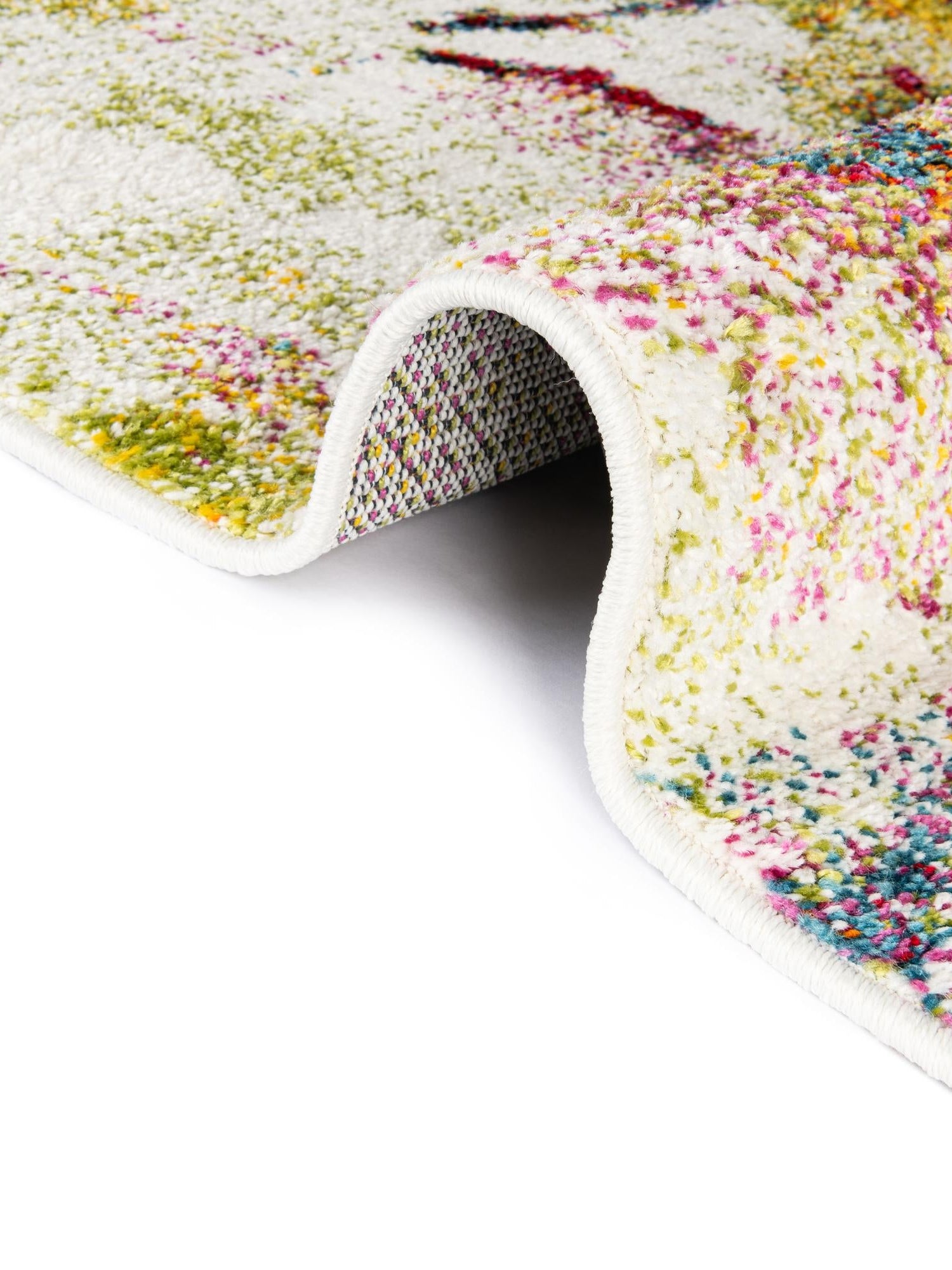 Ivory 7' 10 x 7' 10 Lyon Square Area Rug Vivid Colorful Abstract Modern 100% Polypropylene Carpet for Living Room, Dining, Office