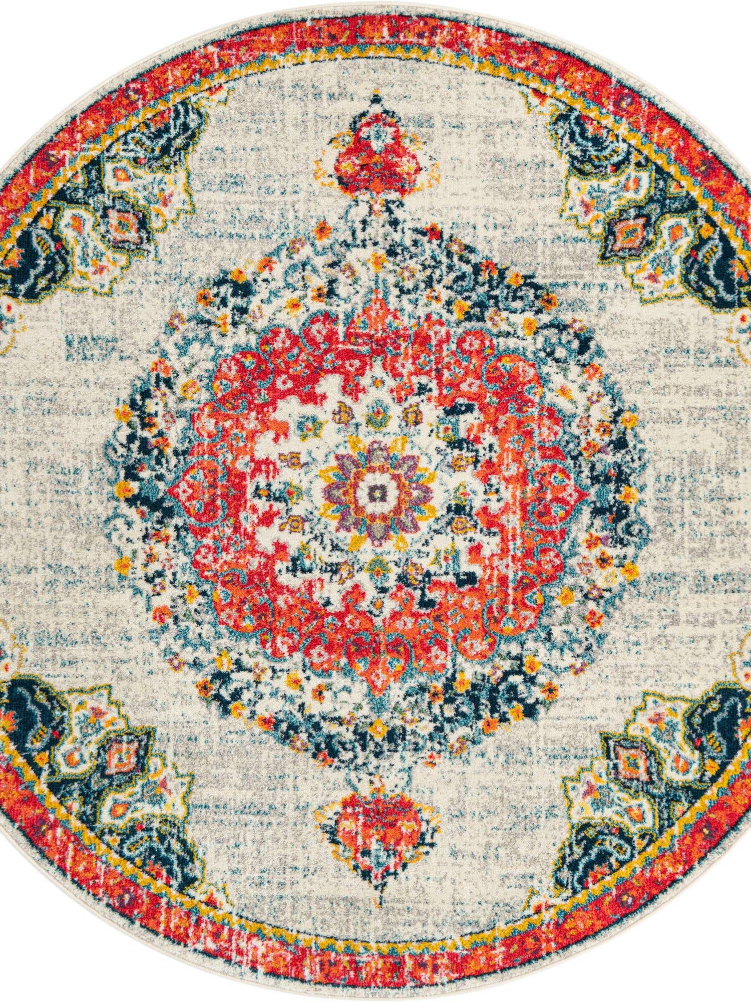 Washable Multicolor 5' x 5' Timeless Round Area Rug Easy to Clean Stain Resistant & Durable