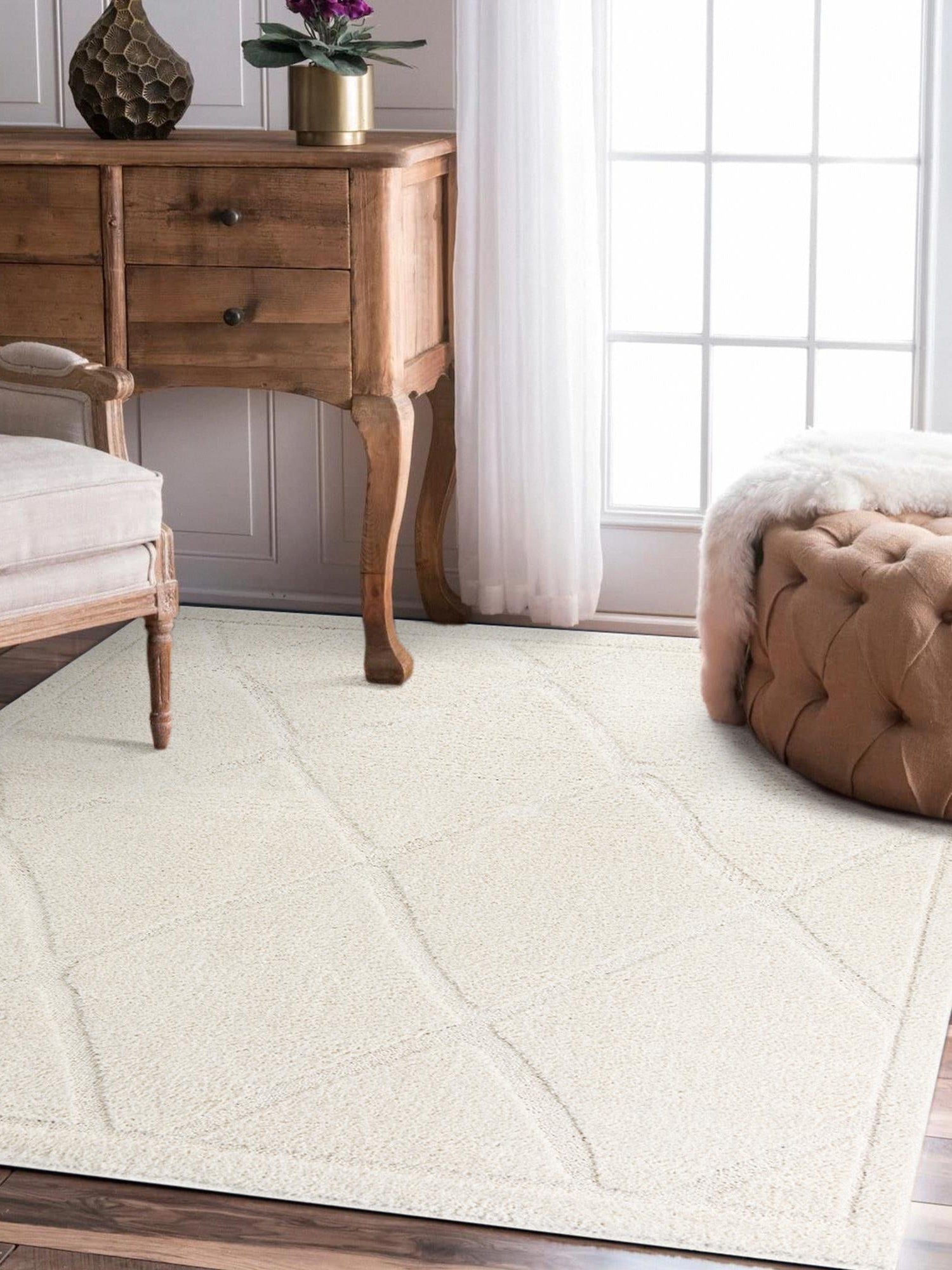 - Modern Geometric Design: Featuring a trendy geometric pattern, this trellis shag rug adds a contemporary touch to your home décor. Its ivory color complements a variety of design schemes, from minimalist to eclectic, making it a versatile addition to your collection. Elevate your interior with a rug that serves as a stylish centerpiece.