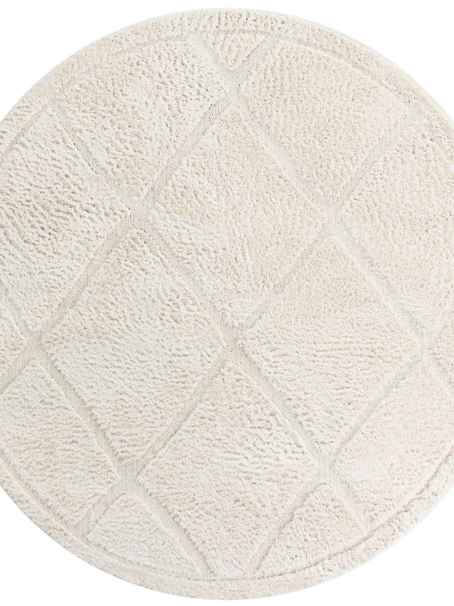 Ivory 7' 10 x 7' 10 Trellis Shag Round Area Rug Thick Soft Touch Fluffy & Plush Shaggy Pile