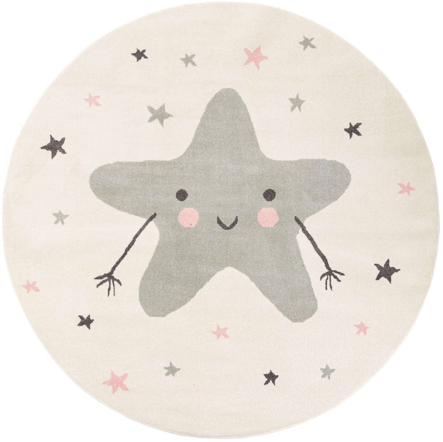Ivory 7' 10 x 7' 10 Whimsy Kids Round Area Rug for Baby Nursery, Toddler Playroom, Bedrooms