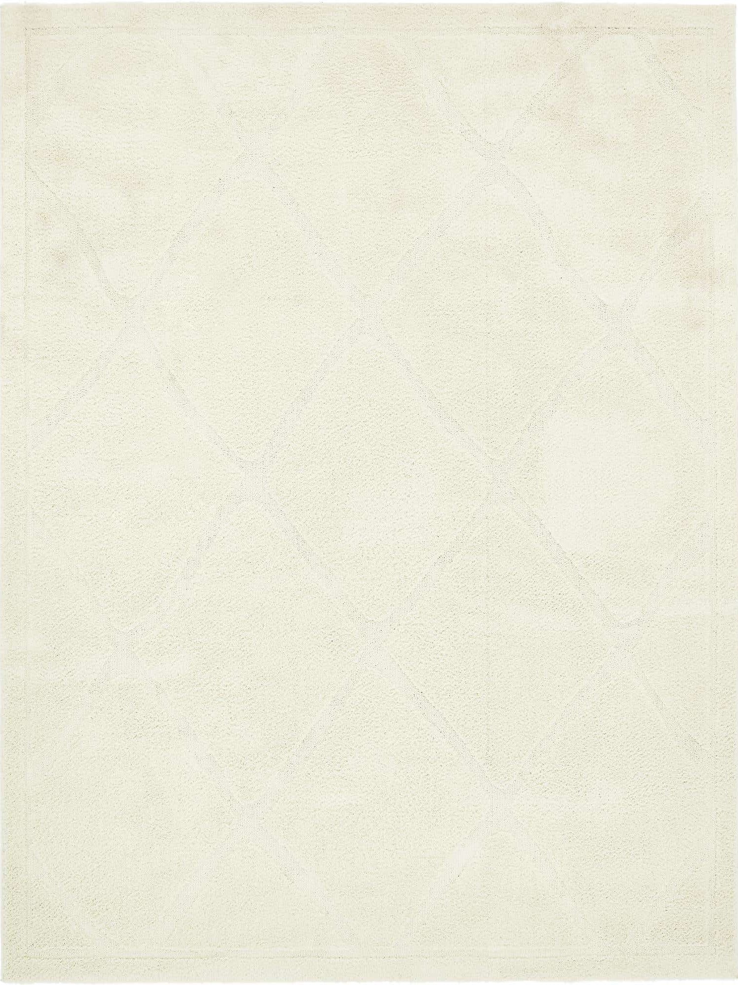 Ivory 9' x 12' Trellis Shag Rectangle Area Rug Thick Soft Touch Fluffy & Plush Shaggy Pile