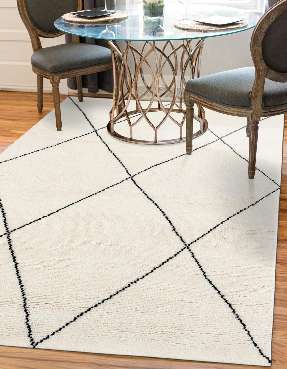- Timeless Color Palette: Featuring a sophisticated combination of ivory and black, this rug easily complements a variety of interior styles. The neutral tones ensure that it blends seamlessly with existing decor while adding a touch of modern flair. Enjoy a versatile aesthetic that enhances your space without overwhelming it.