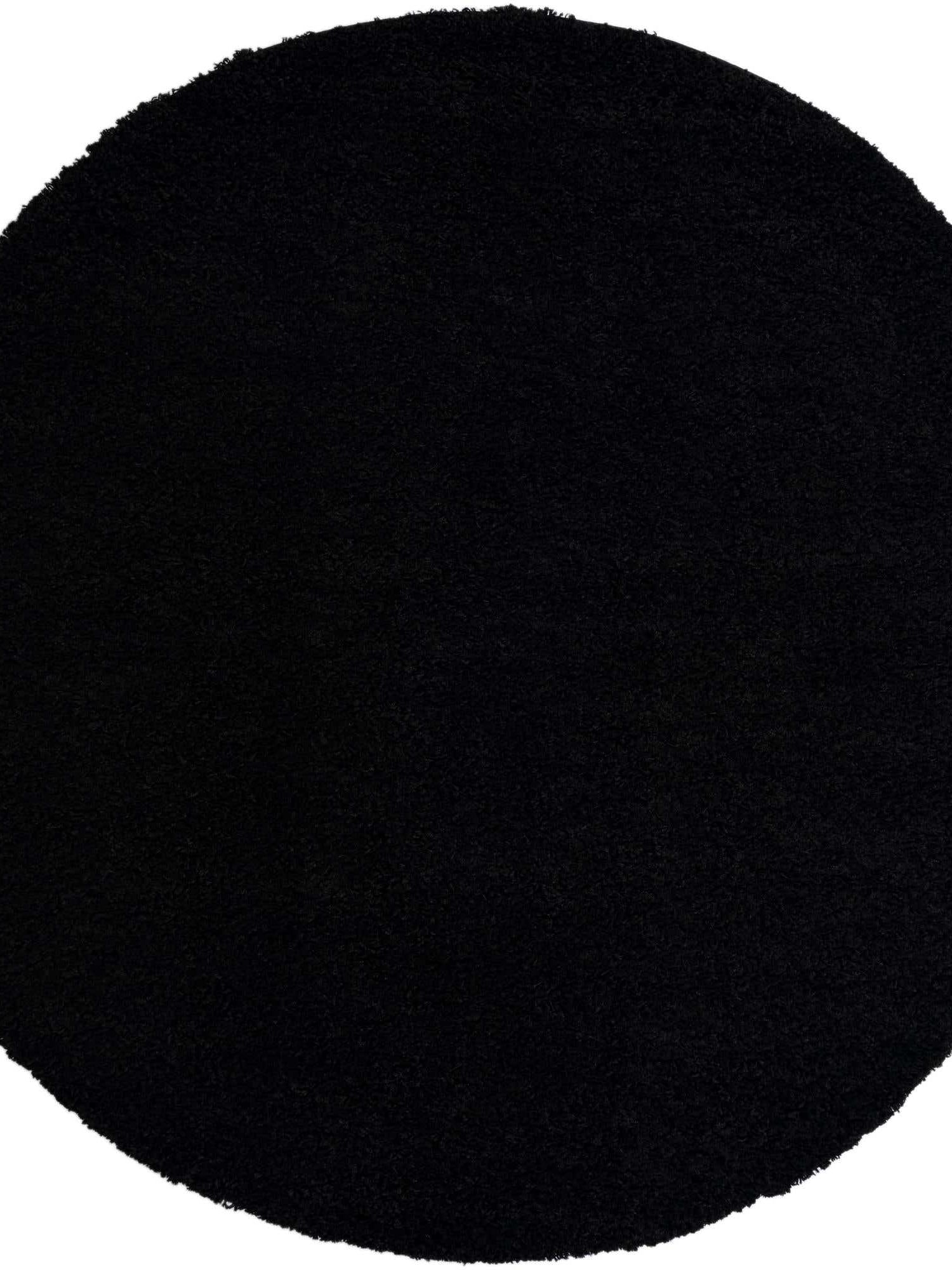 Jet Black 7' 1 x 7' 1 Solid Shag Round Area Rug Thick Soft Touch Fluffy & Plush Shaggy Pile