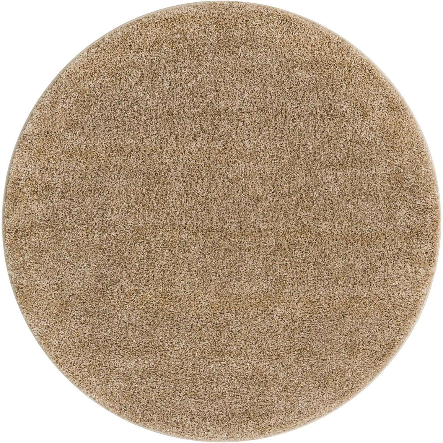 Khaki 3' 3 x 3' 3 Soft Solid Shag Round Area Rug Thick Soft Touch Fluffy & Plush Shaggy Pile