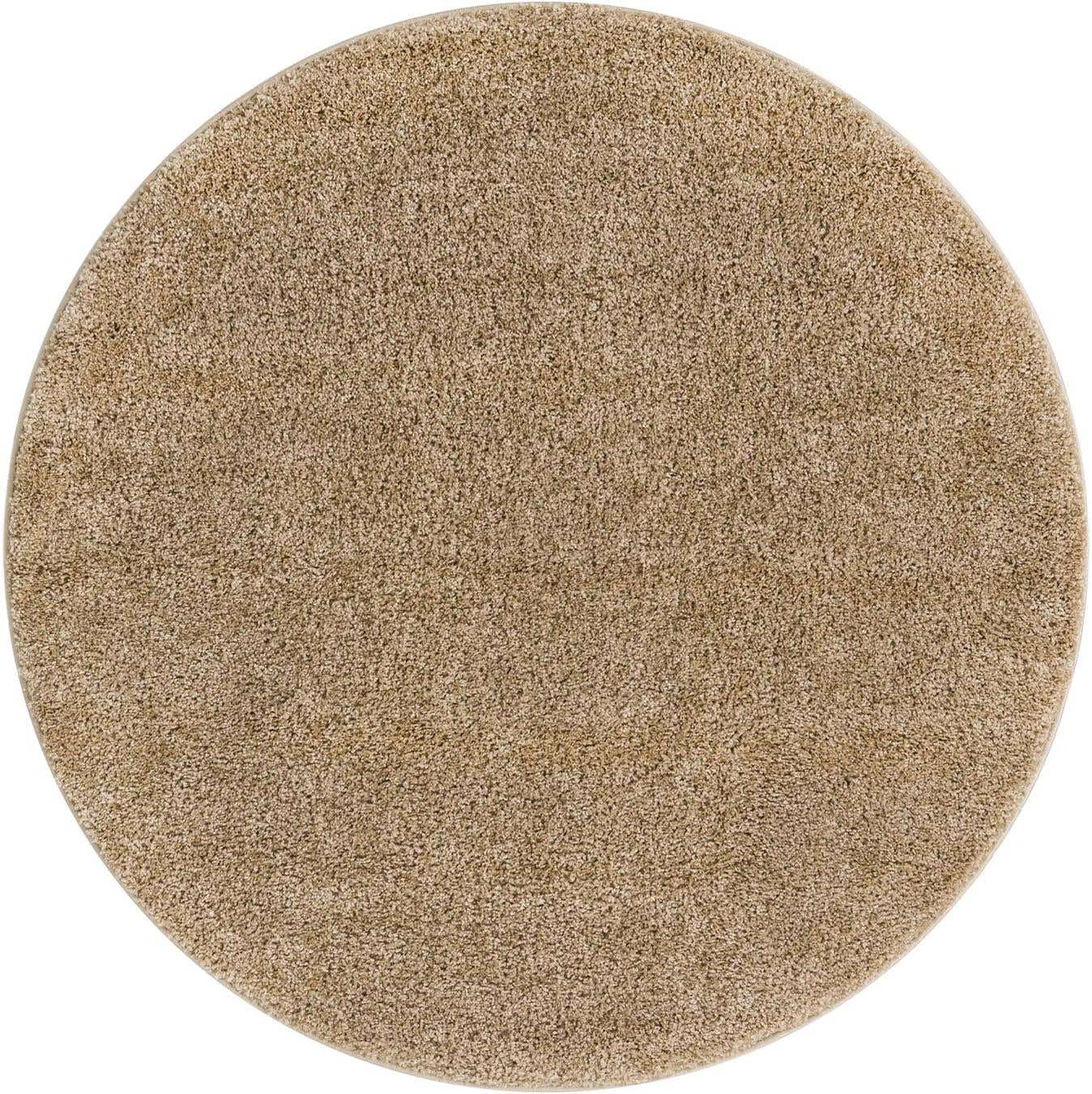 Khaki 4' 1 x 4' 1 Soft Solid Shag Round Area Rug Thick Soft Touch Fluffy & Plush Shaggy Pile