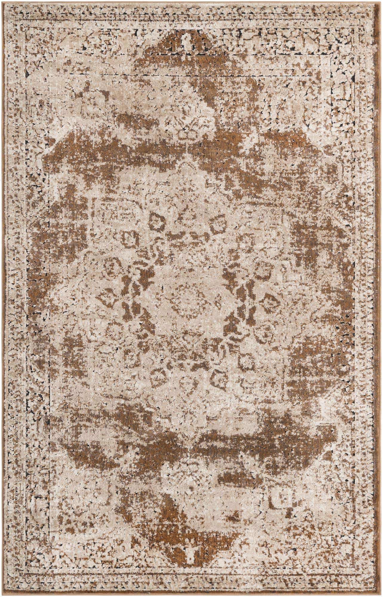 Khaki 4' 1 x 6' 1 Chateau Rectangle Area Rug 85% Polypropylene & 15% Chenille With Cotton Backing Traditional Vintage Distressed Carpet for Classical Interior Design Decorating