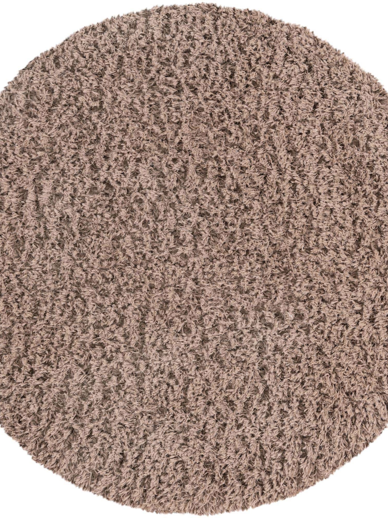 Khaki 5' 1 x 5' 1 Infinity Shag Round Area Rug Thick Soft Touch Fluffy & Plush Shaggy Pile 100% Polypropylene With Jute Backing Solid Color Minimalist Carpet