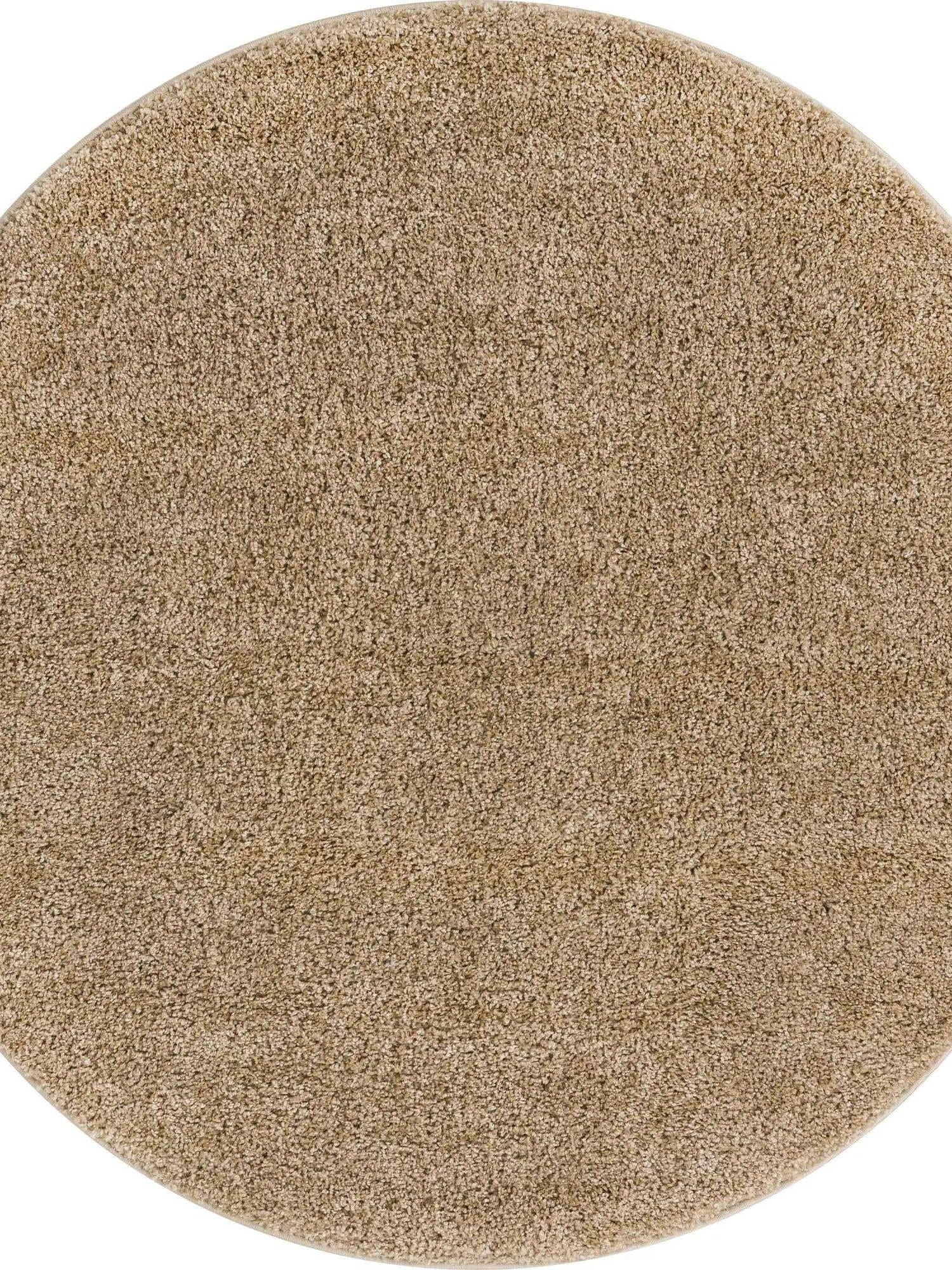 Khaki 5' 1 x 5' 1 Soft Solid Shag Round Area Rug Thick Soft Touch Fluffy & Plush Shaggy Pile