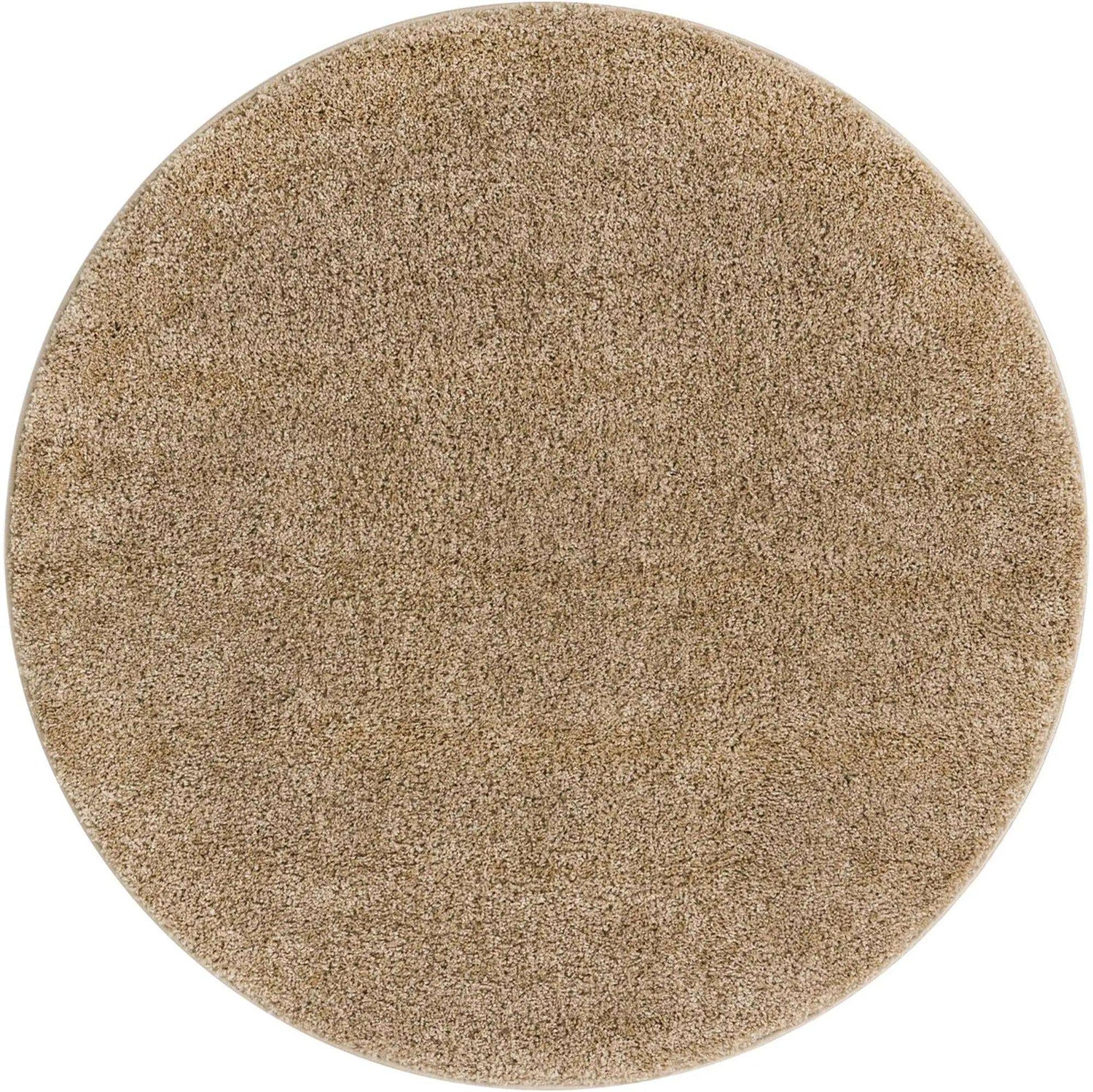 Khaki 8' x 8' Soft Solid Shag Round Area Rug Thick Soft Touch Fluffy & Plush Shaggy Pile
