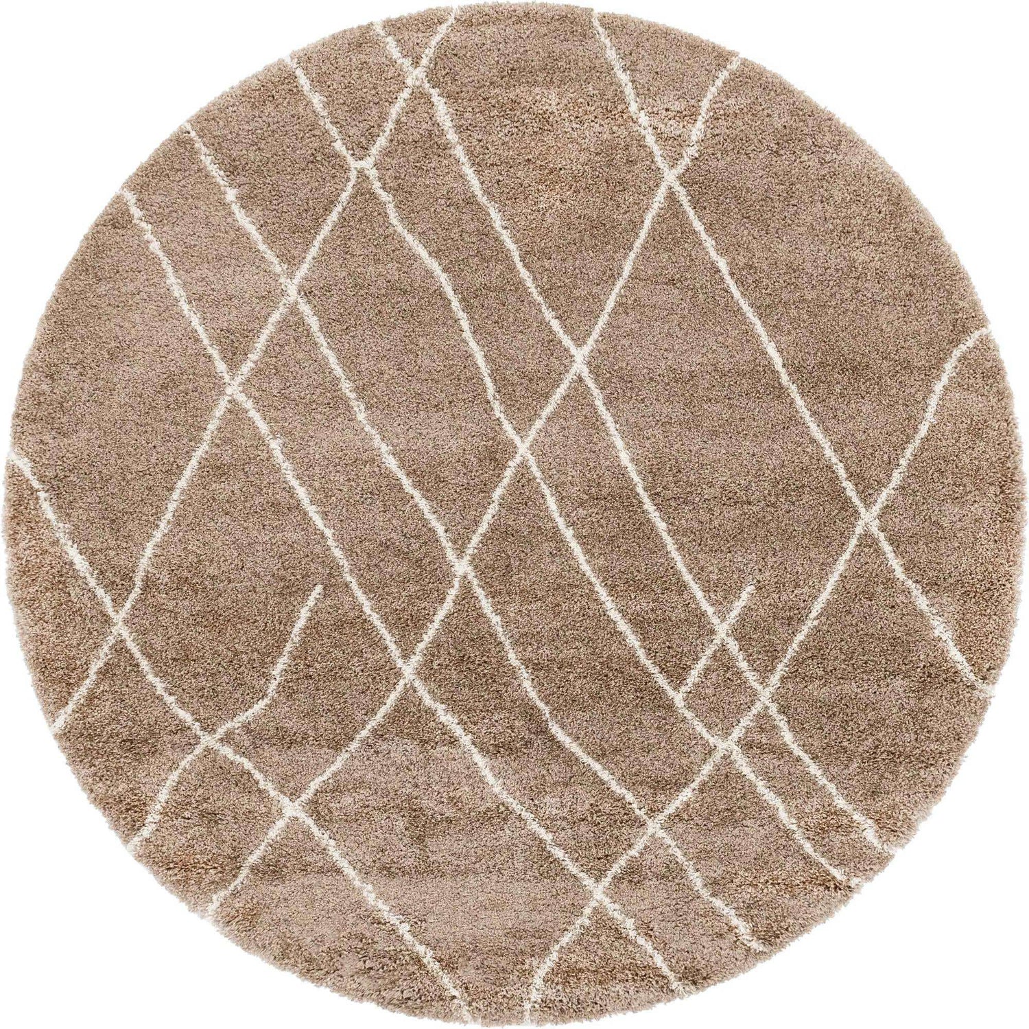 Khaki 7' 10 x 7' 10 Soft Touch Shag Round Area Rug Thick Soft Touch Fluffy & Plush Shaggy Pile