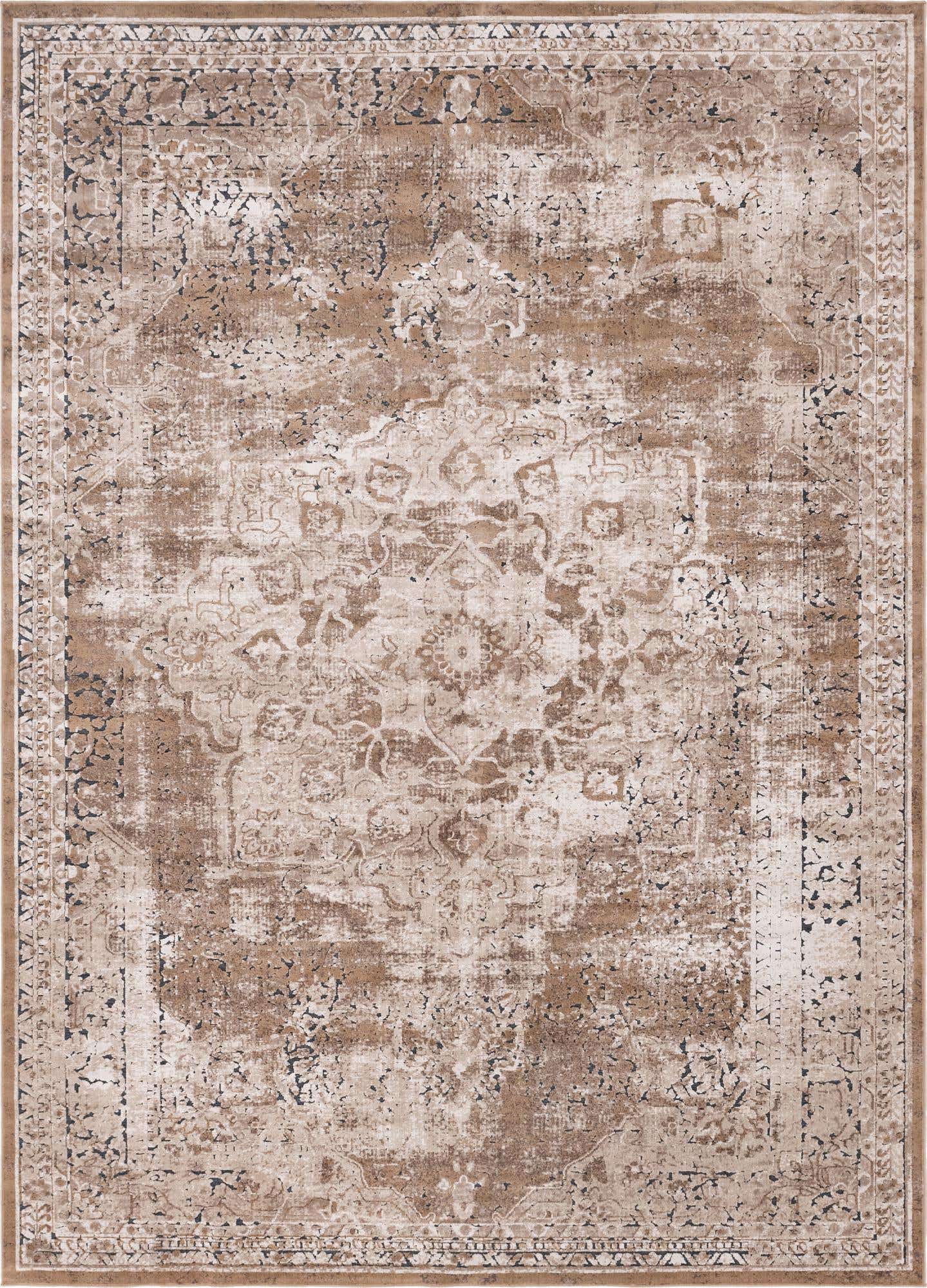 Khaki 9' x 12' Chateau Rectangle Area Rug 85% Polypropylene & 15% Chenille With Cotton Backing Traditional Vintage Distressed Carpet for Classical Interior Design Decorating