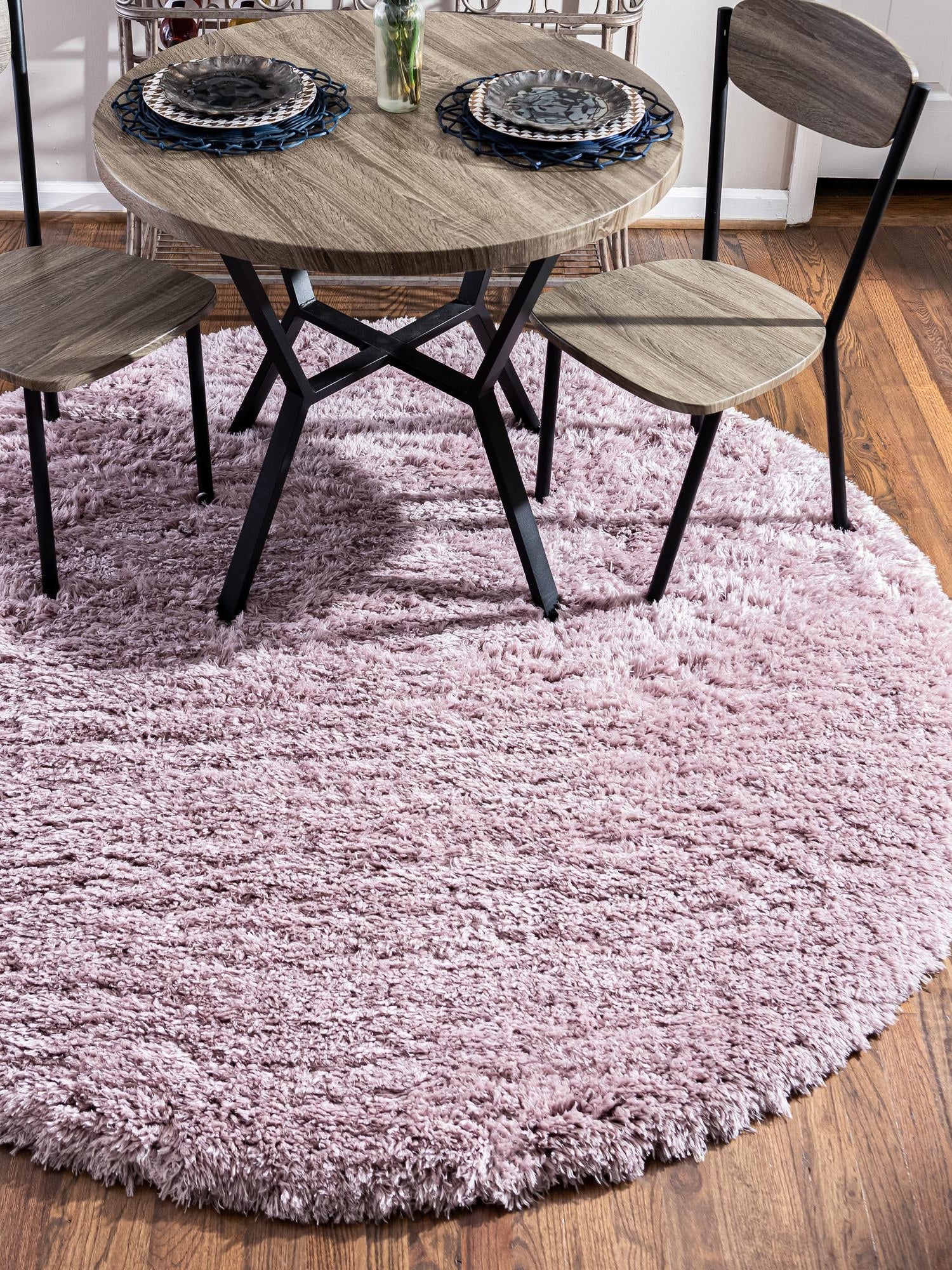 Lavender 8' x 8' Infinity Shag Round Area Rug Thick Soft Touch Fluffy & Plush Shaggy Pile 100% Polypropylene With Jute Backing Solid Color Minimalist Carpet