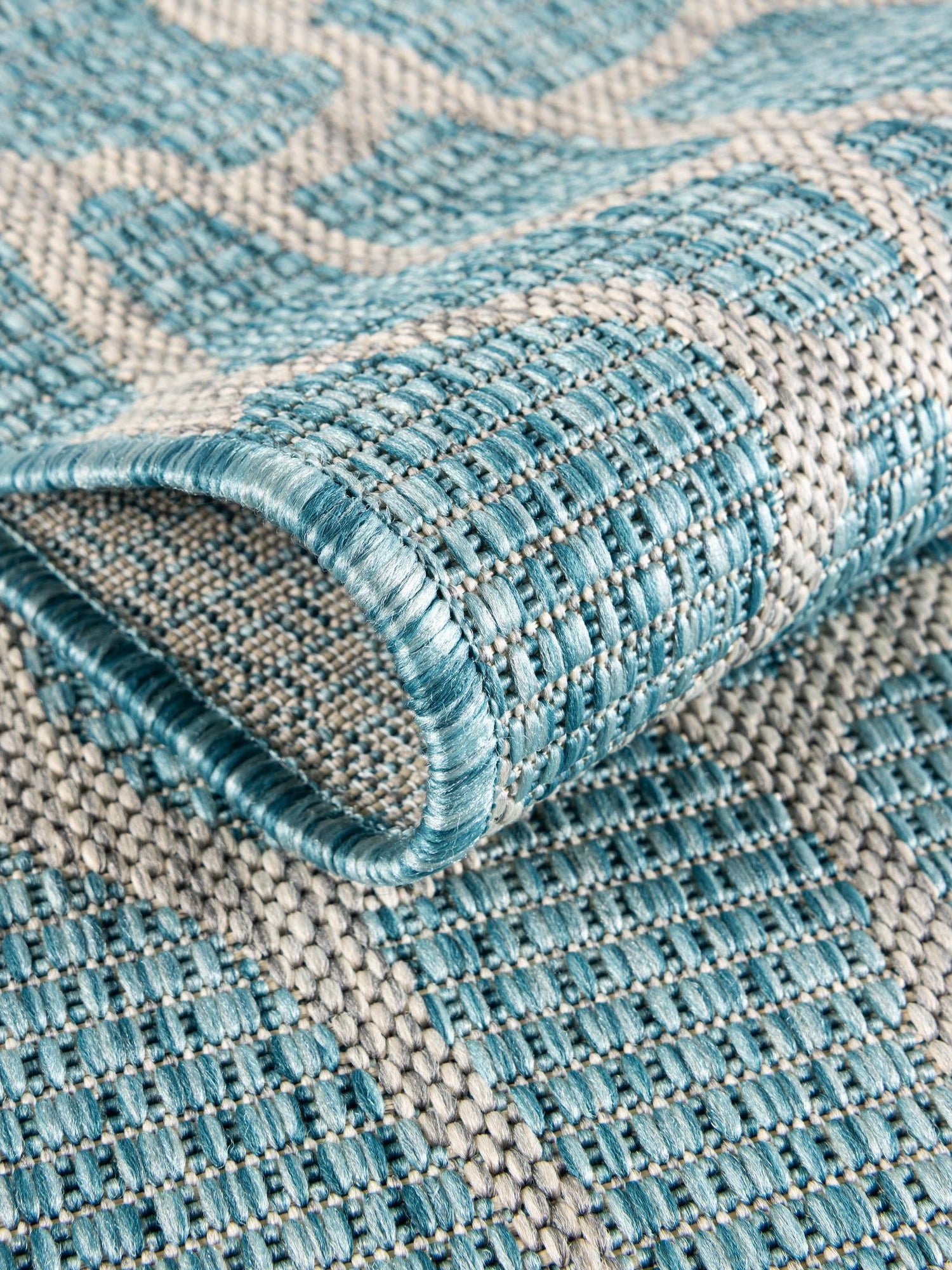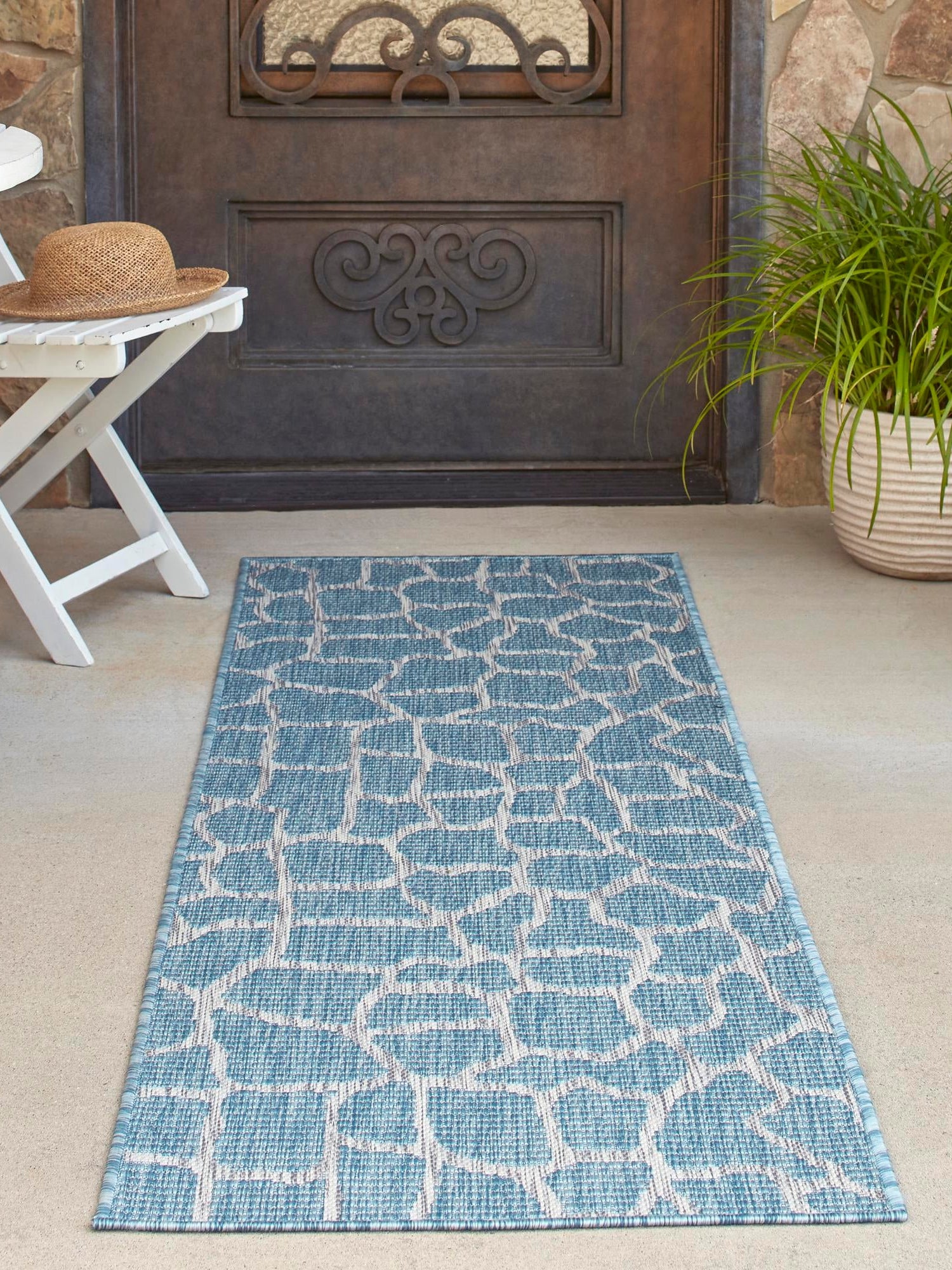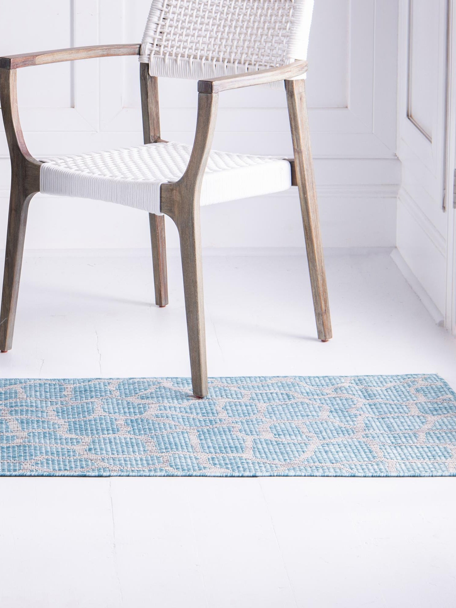Light Aqua 2' x 6' 1 Outdoor Safari Runner Area Rug Weather Resistant for Patio, Deck, Terrace, Balcony, Porch