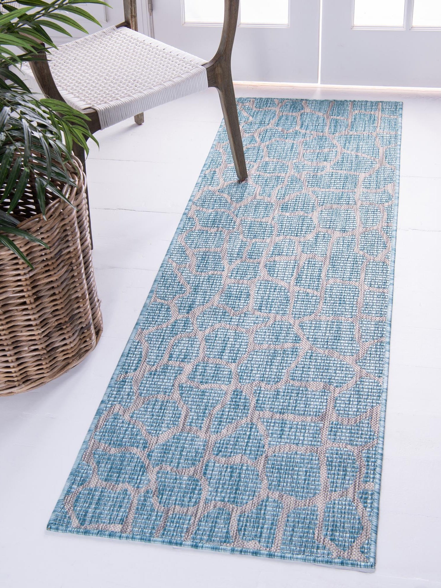 Light Aqua 2' x 6' 1 Outdoor Safari Runner Area Rug Weather...