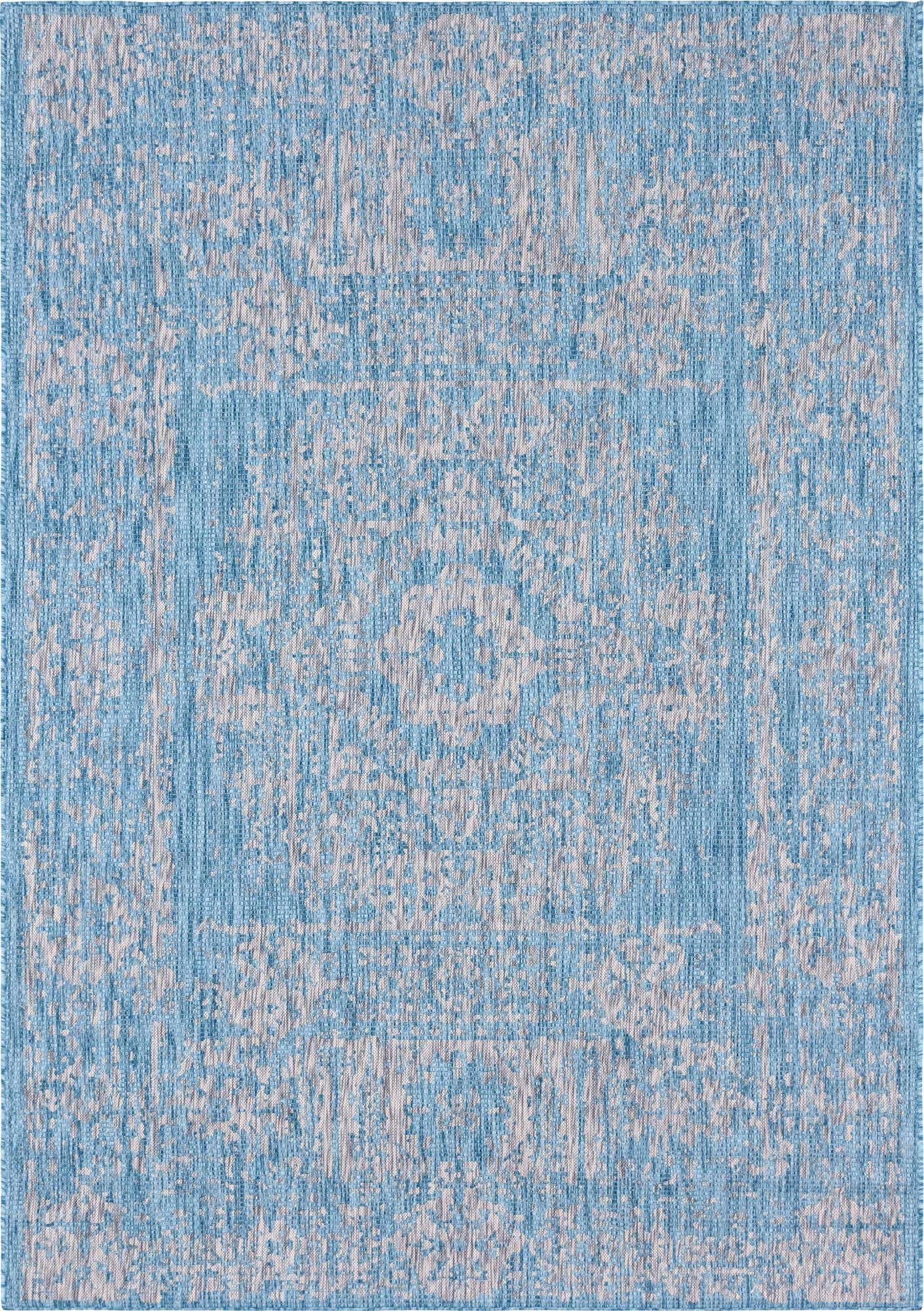 Light Aqua 7' 1 x 10' Outdoor Traditional Rectangle Area Rug Weather Resistant for Patio, Deck, Terrace, Balcony, Porch