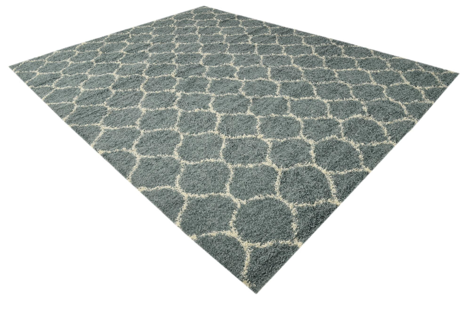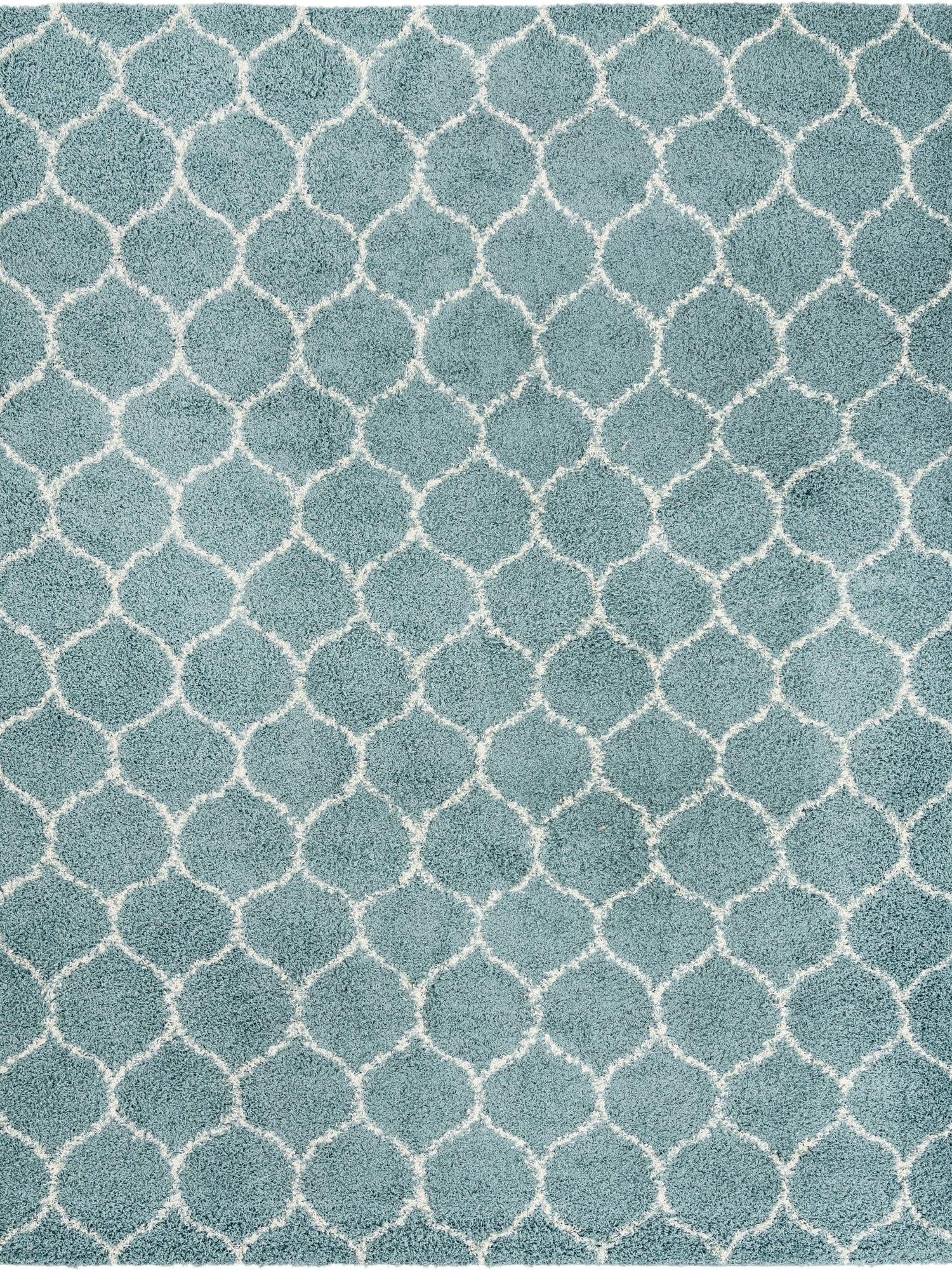 Light Blue 10' x 13' Trellis Shag Rectangle Area Rug Thick ...