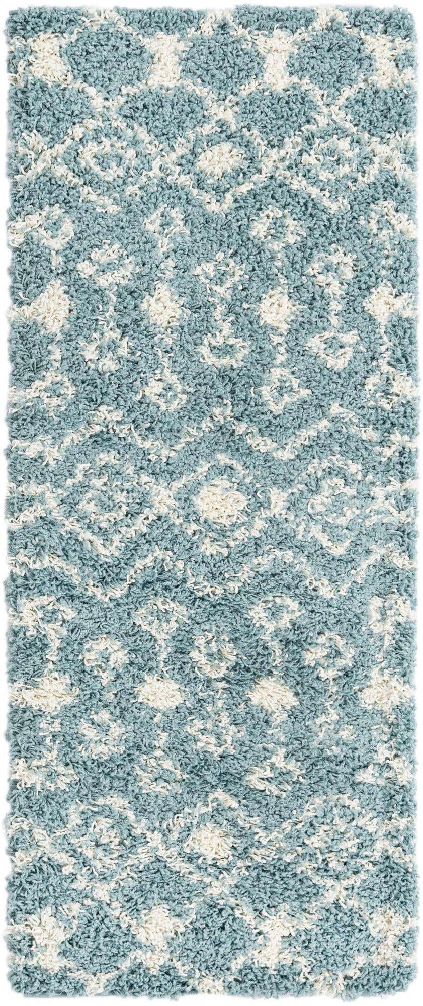 Light Blue 2' x 5' 1 Moroccan Trellis Shag Runner Area Rug ...