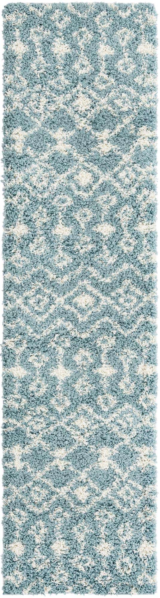 Light Blue 2' x 8' Moroccan Trellis Shag Runner Area Rug Th...