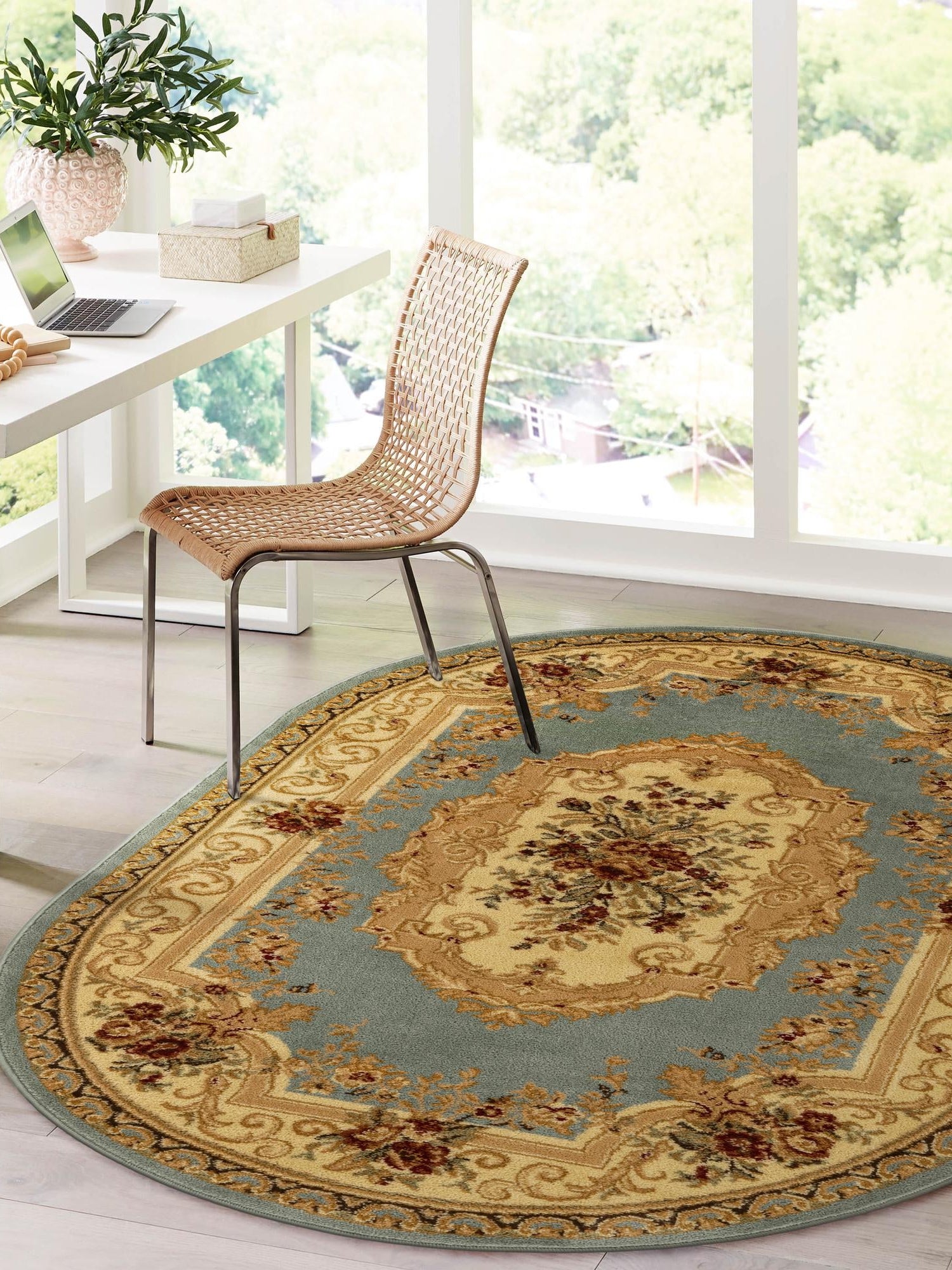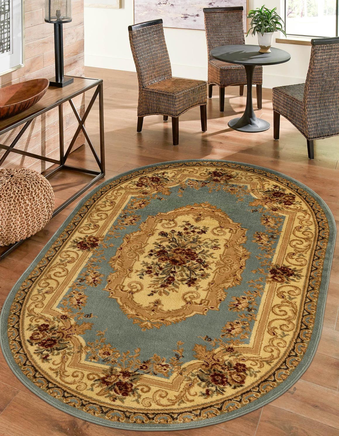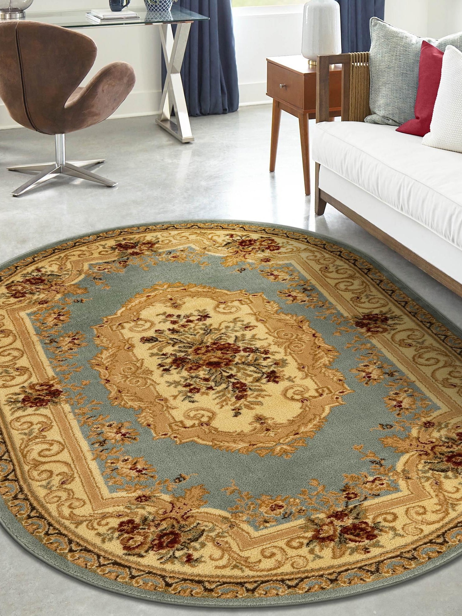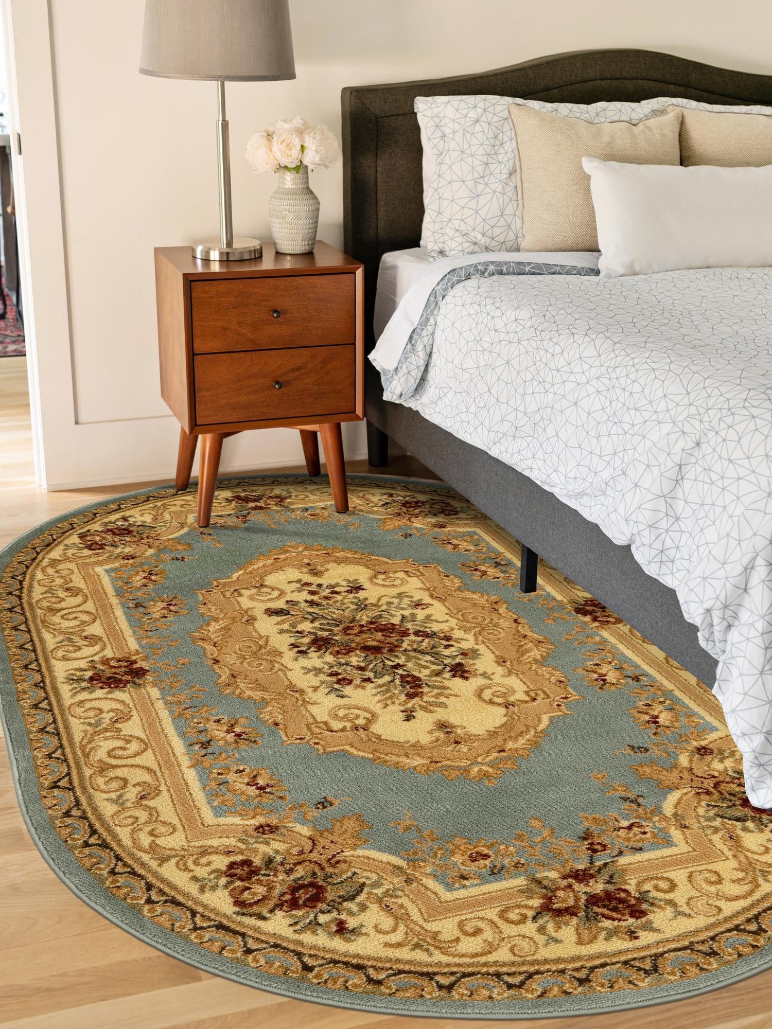 Washable Blue 2' x 3' 1 Timeless Oval Area Rug Easy to Clean Stain Resistant & Durable