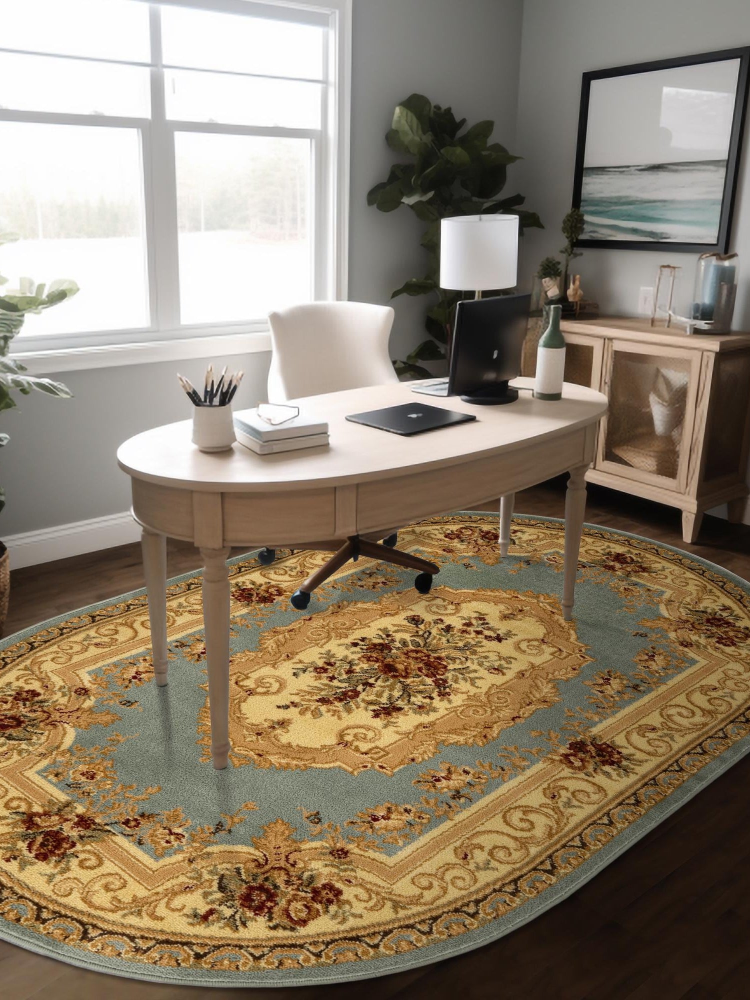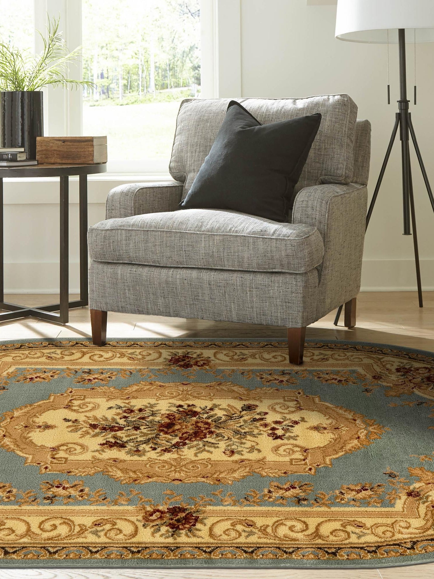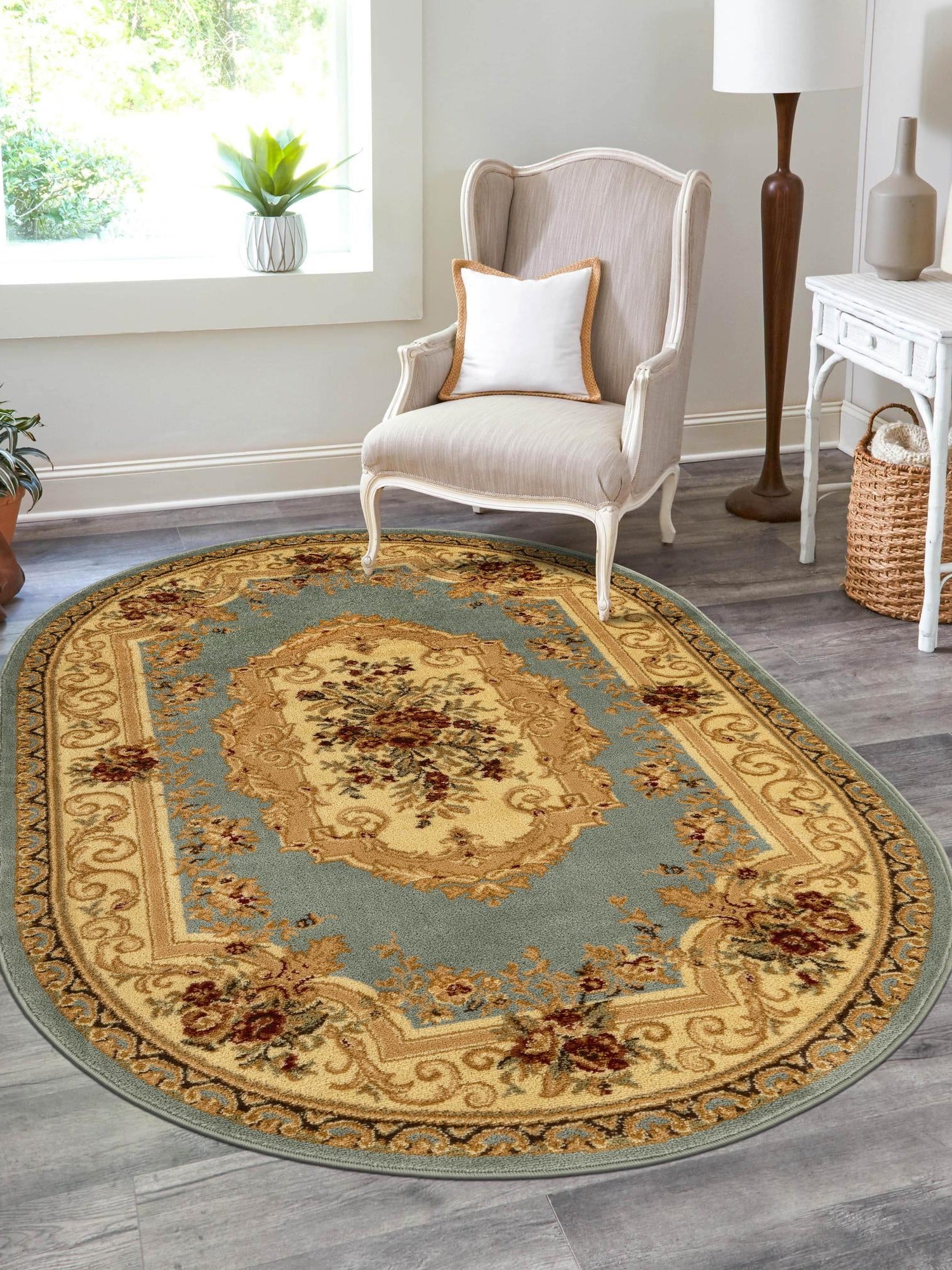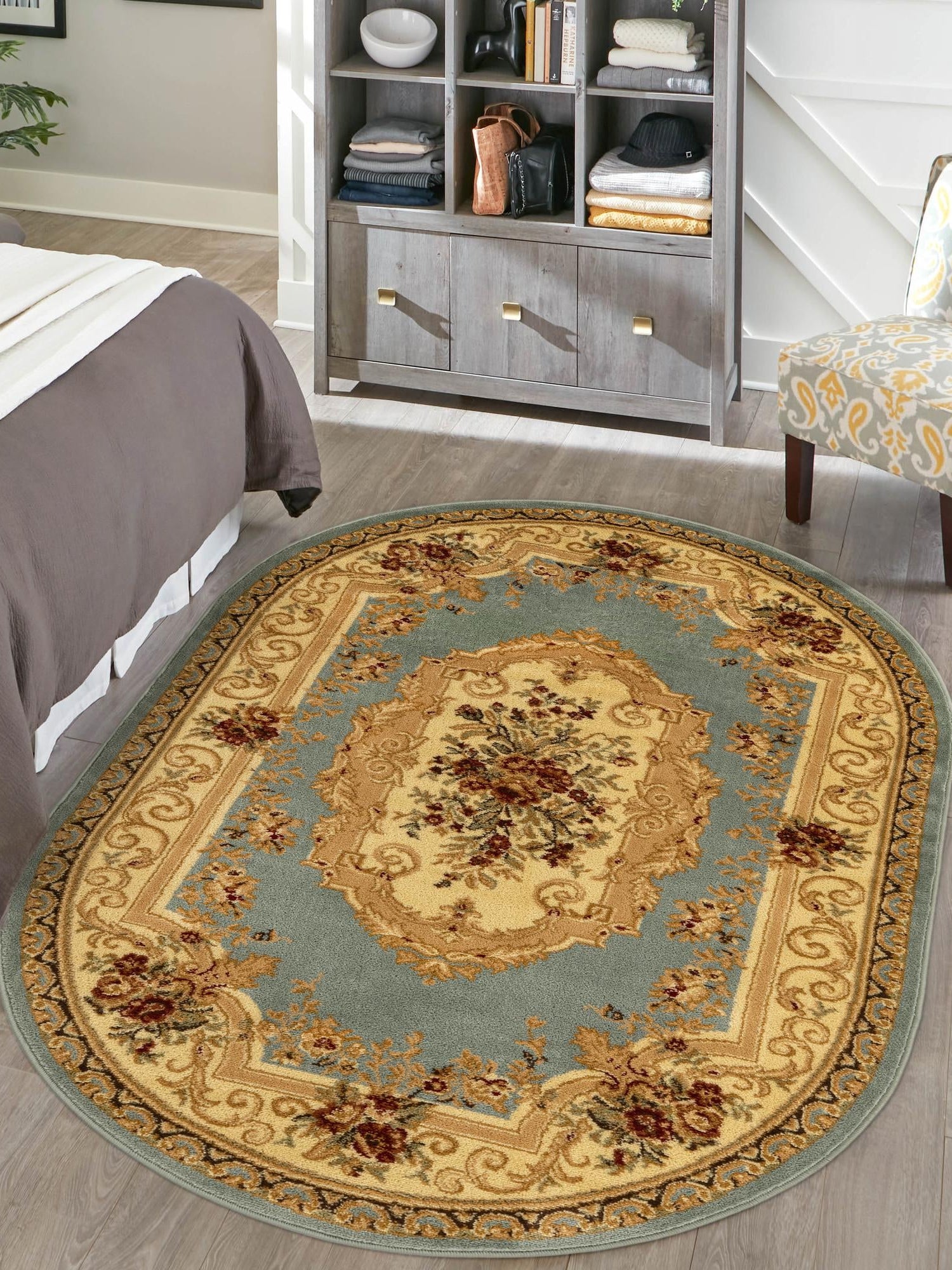 Washable Blue 2' x 3' 1 Timeless Oval Area Rug Easy to Clean Stain Resistant & Durable