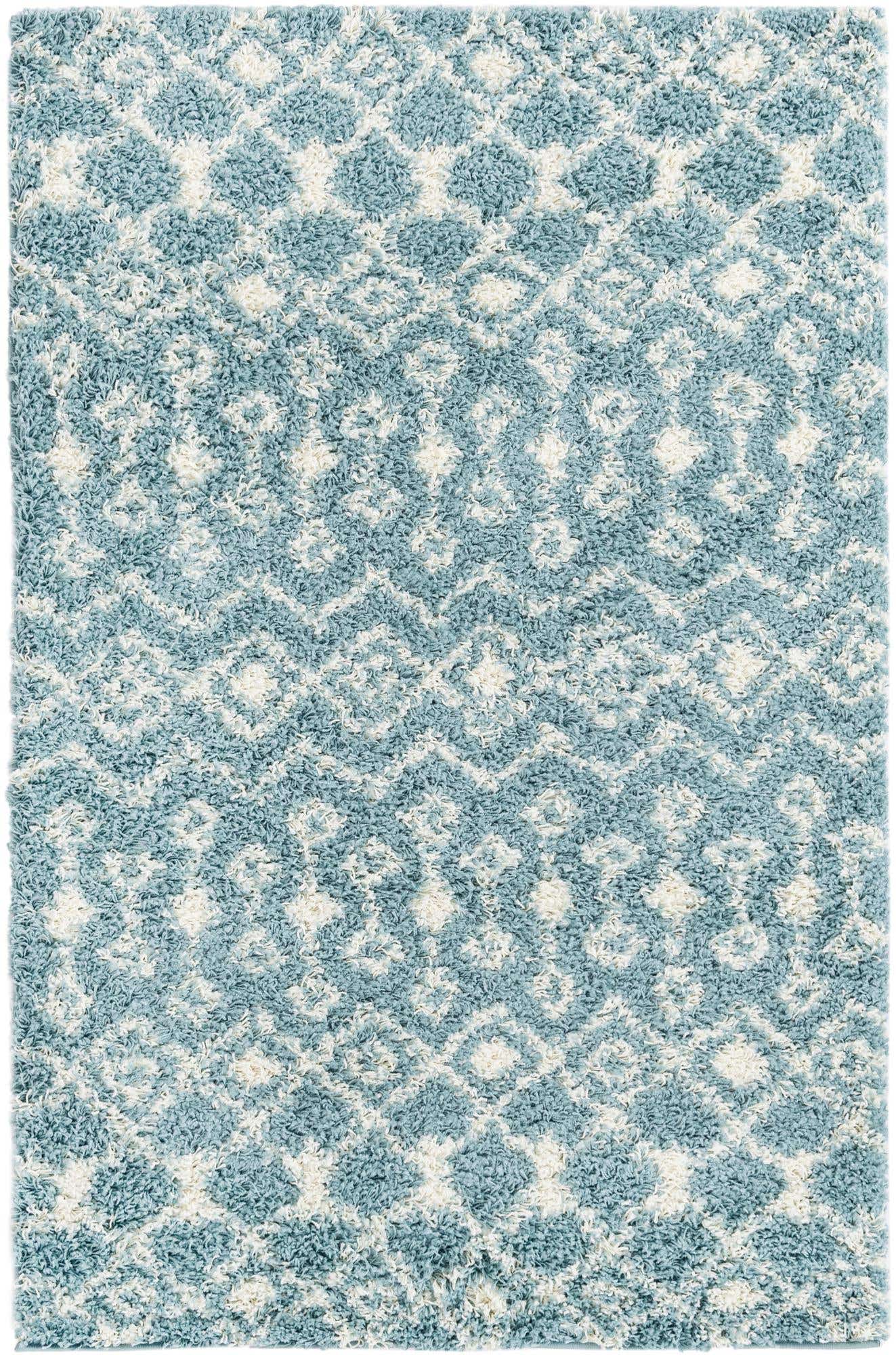 Light Blue 4' 1 x 6' 1 Moroccan Trellis Shag Rectangle Area...