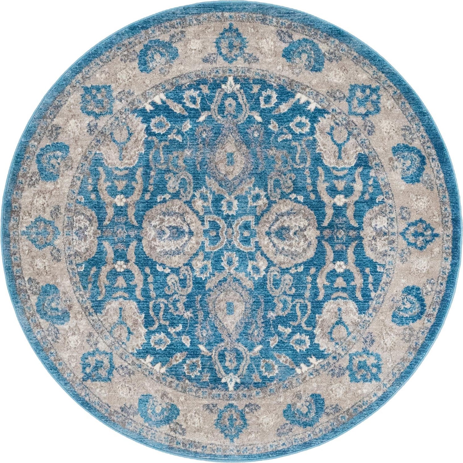 Light Blue 5' 1 x 5' 1 Salzburg Round Area Rug Stain Resistant Easy Clean Traditional Classic Design Durable Carpet for Affordable Interior Home Decorating