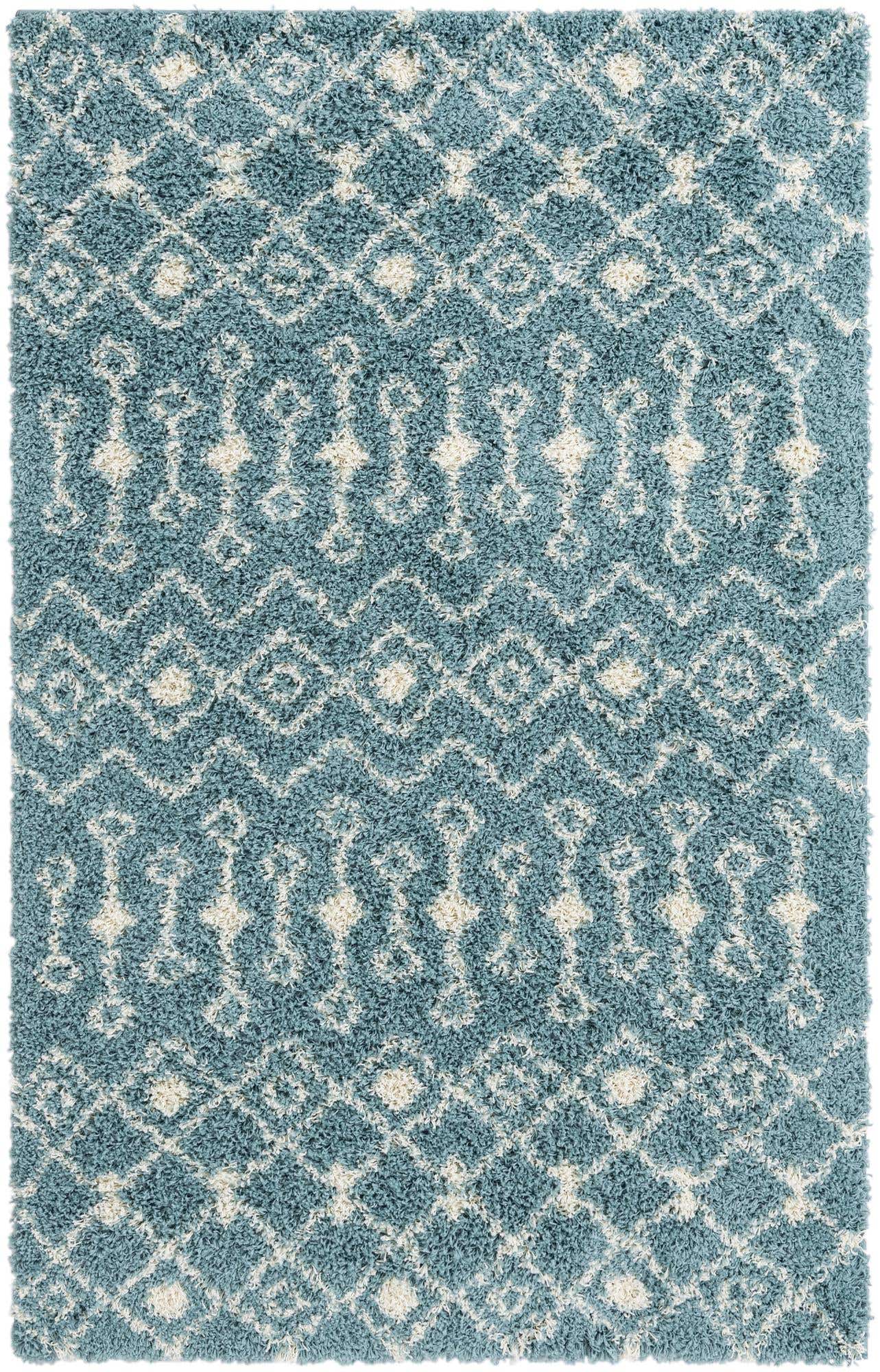 Light Blue 5' 3 x 8' Moroccan Trellis Shag Rectangle Area Rug Thick Soft Touch Fluffy & Plush Shaggy Pile